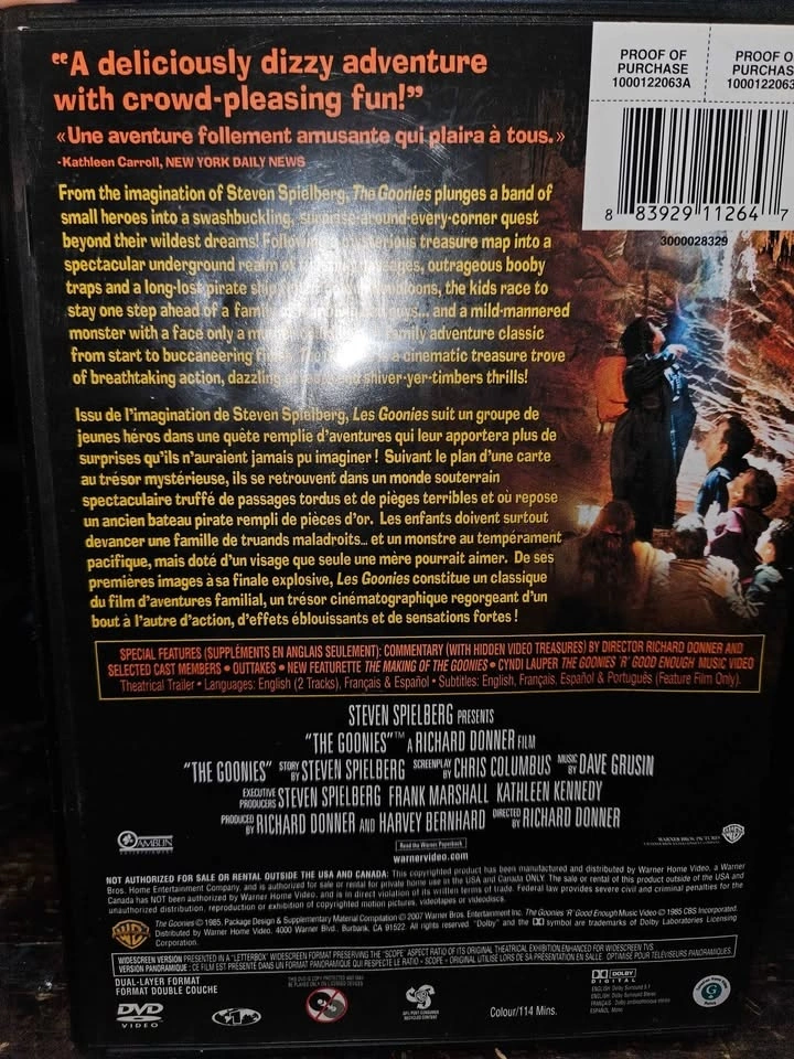Original DVD of The Goonies, the beloved 1980s adventure classic presented by Steven Spielberg and directed by Richard Donner.