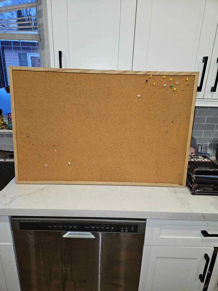 Large Cork Bulletin Board – Wood Frame – 35” x 22¾”