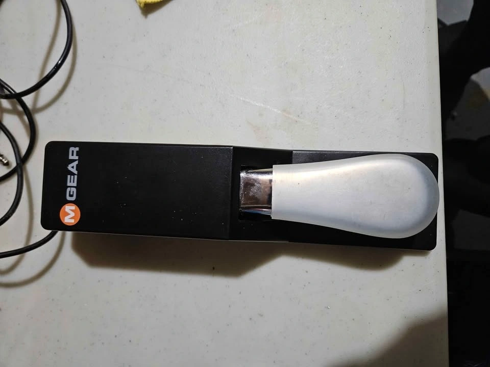 M-Gear universal sustain pedal for digital pianos, keyboards, and MIDI controllers. Solid build with a chrome-style pedal and non-slip base.