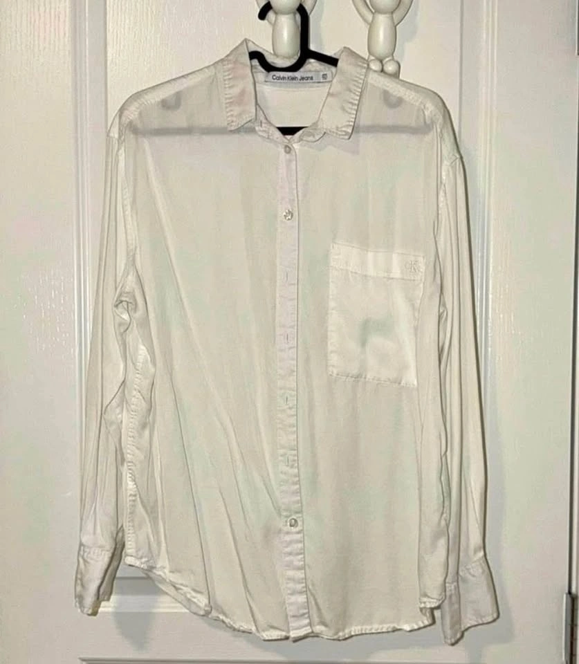 Calvin Klein flowy white shirt, women’s size S. Worn less than 5 times, like new condition.
