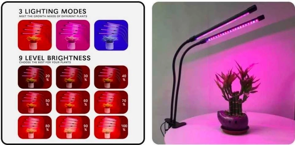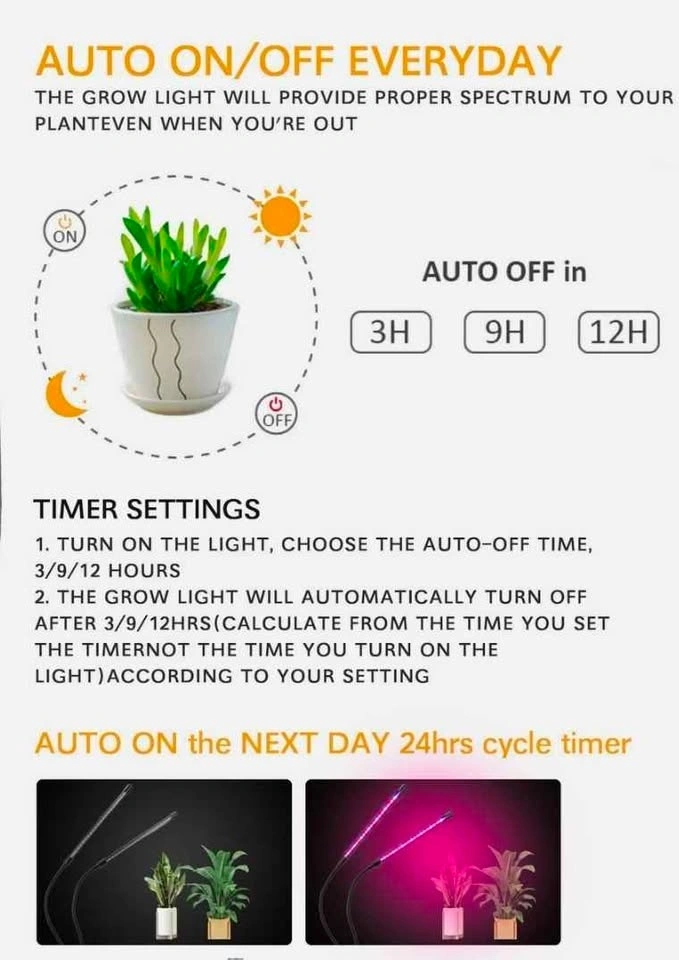 *USB LED Plant Grow Light *Color:Black *Plug type:USB Port *Input Voltage:DC 5V *Rated Current:2000 *Wattage:1 Heads:9W/2 Heads:18W/3 Heads:27W *Lifespan:More then 50000 hours *Cable Length:About 60cm *Switch type:Automatic memory switch *Material:Premium metal & Plastic,Made of durable and practical metal and plastic