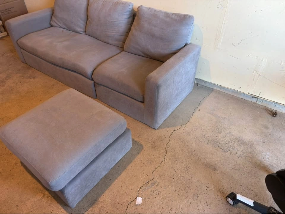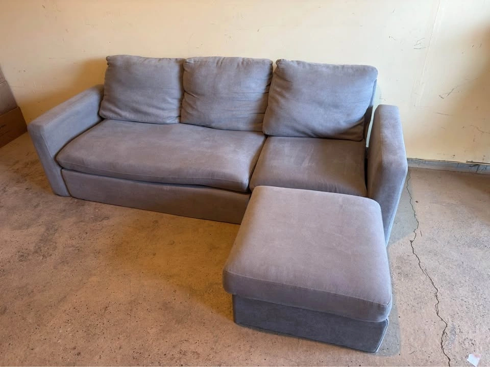 Modern gray sectional couch with chaise lounge. Comfortable, sturdy, and great for apartments, living rooms, or basements. Neutral color that matches almost any décor.