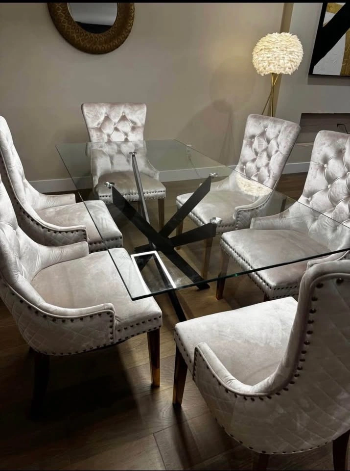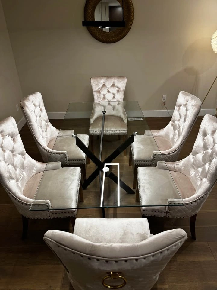 Glass Dining Table with Metal Legs - BRAND NEW