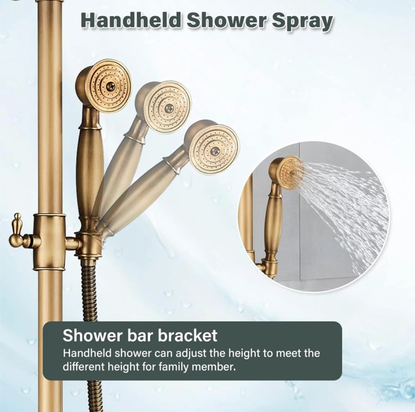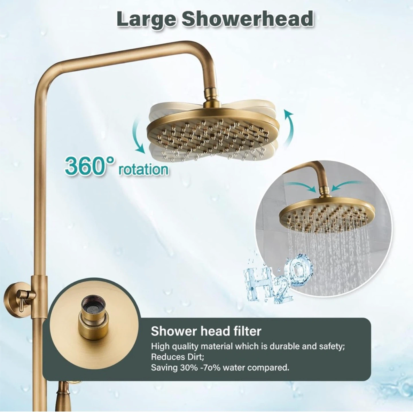 NeierThodore Antique Brass 8-Inch Bathroom Shower Faucet System