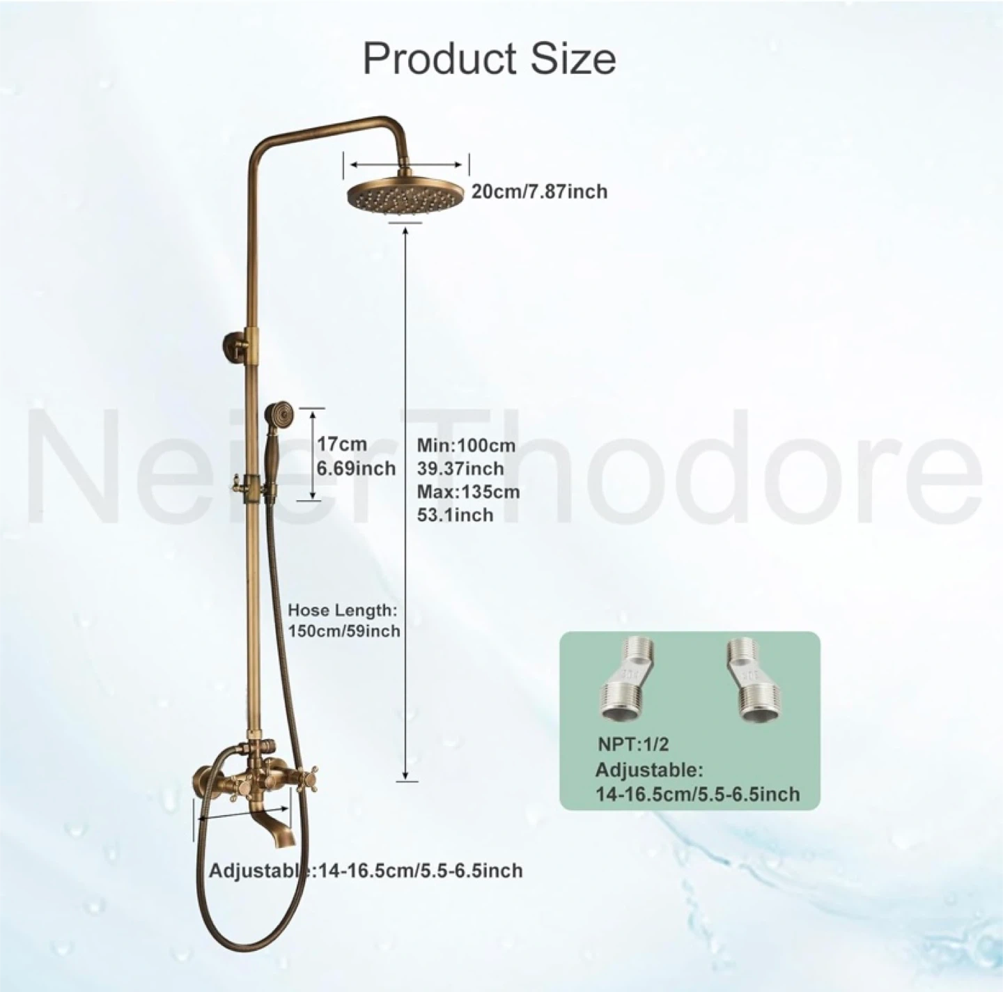 High Quality】:NeierThodore Shower Faucet Set is made of solid brass;Antique brass finish to resist corrosion and tarnishing.
