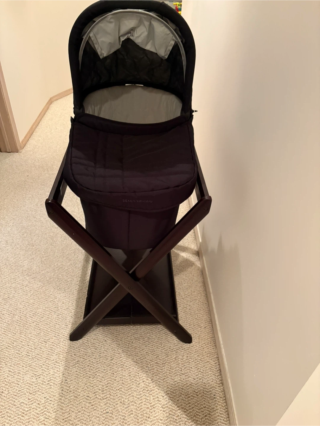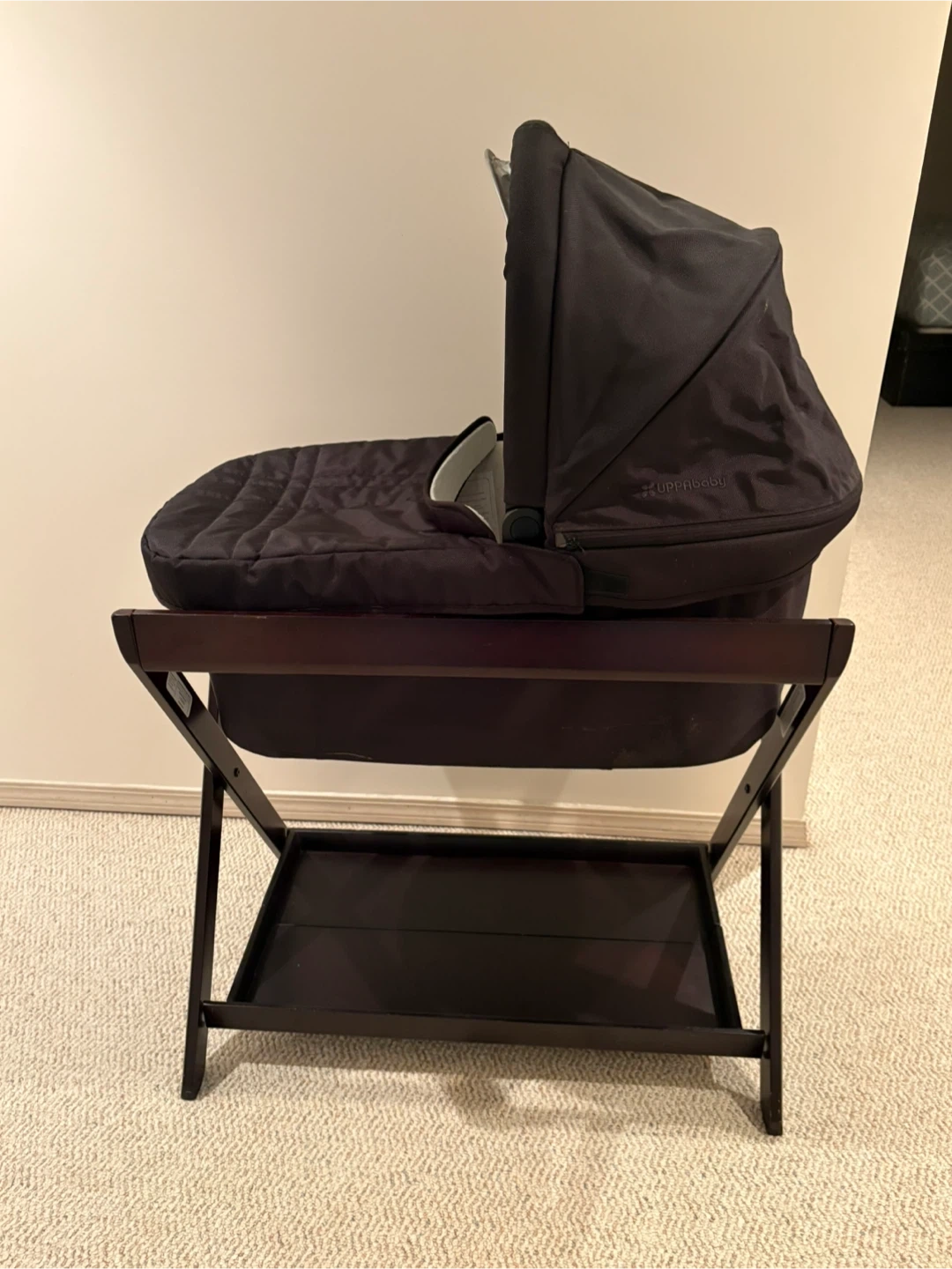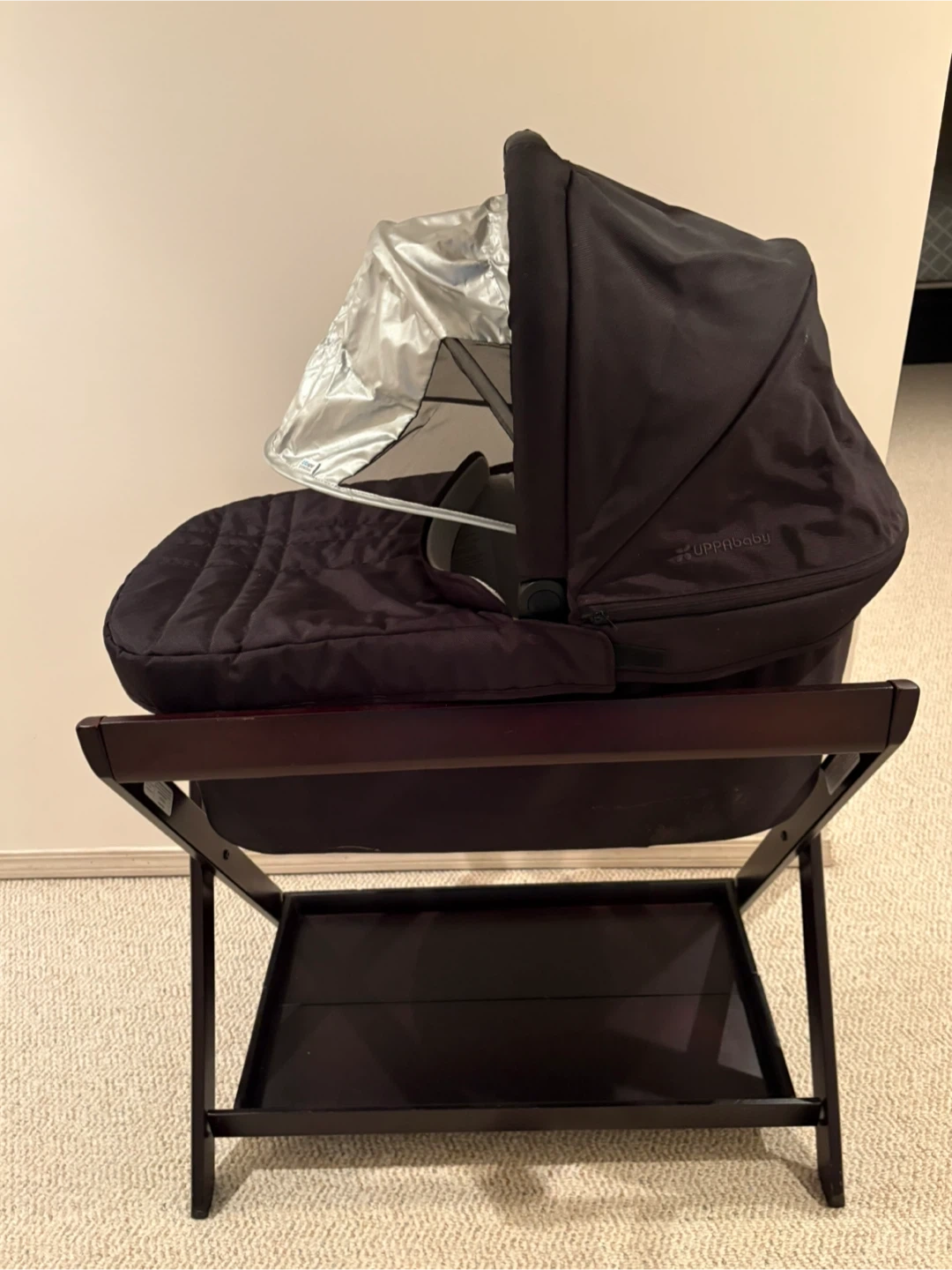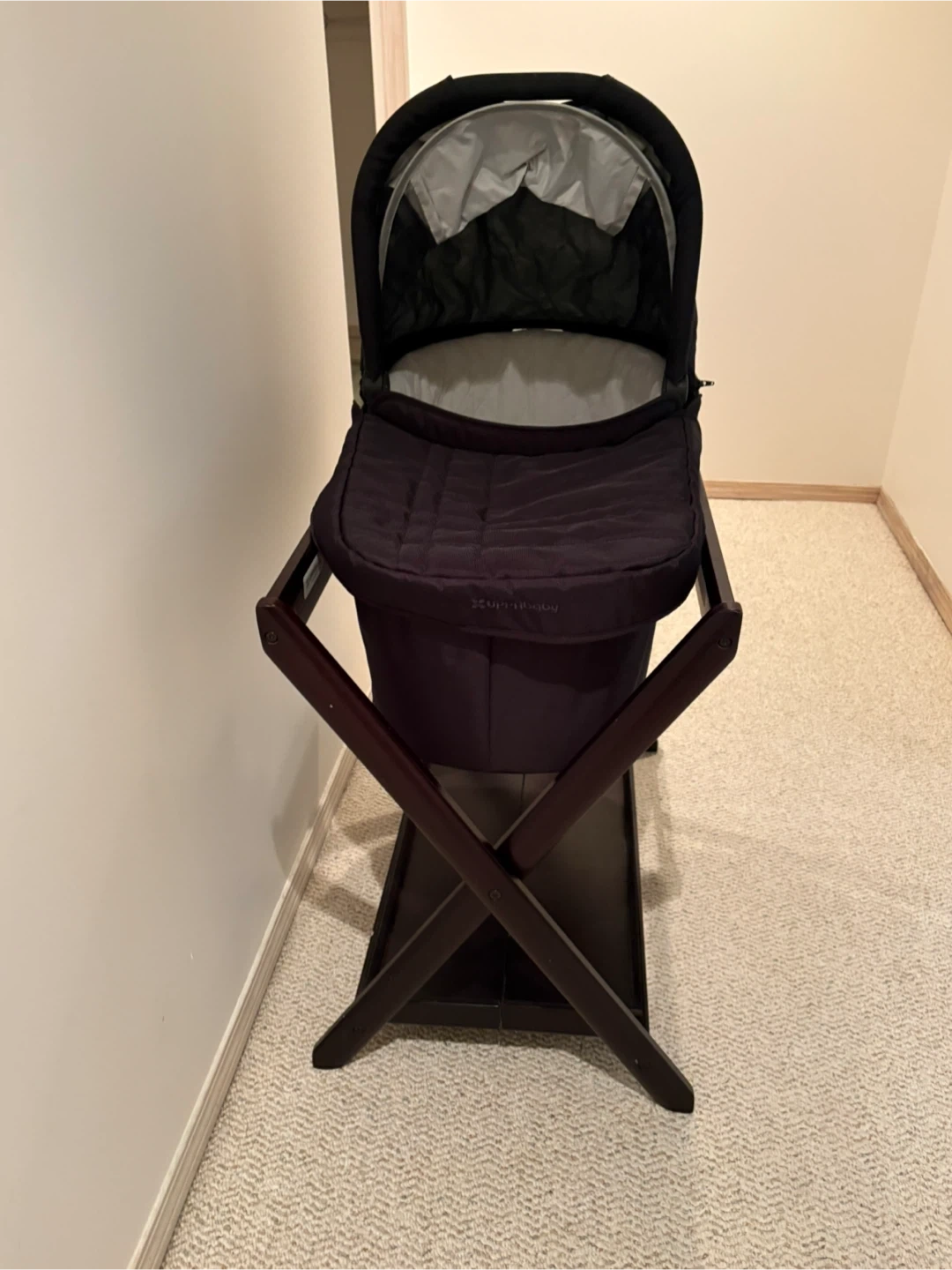 Uppa baby bassinet comes with stand, can also be used in Uppa baby stroller clicks in.
