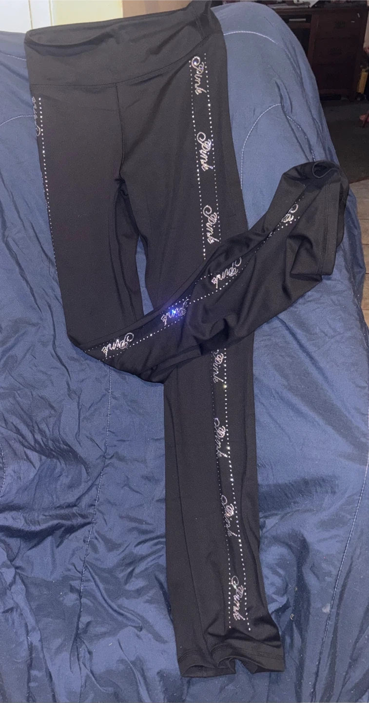 Selling a pair of Victoria's Secret PINK leggings in black! They feature the PINK logo down the side of the leg with rhinestones. They're in great condition and ready for a new home!