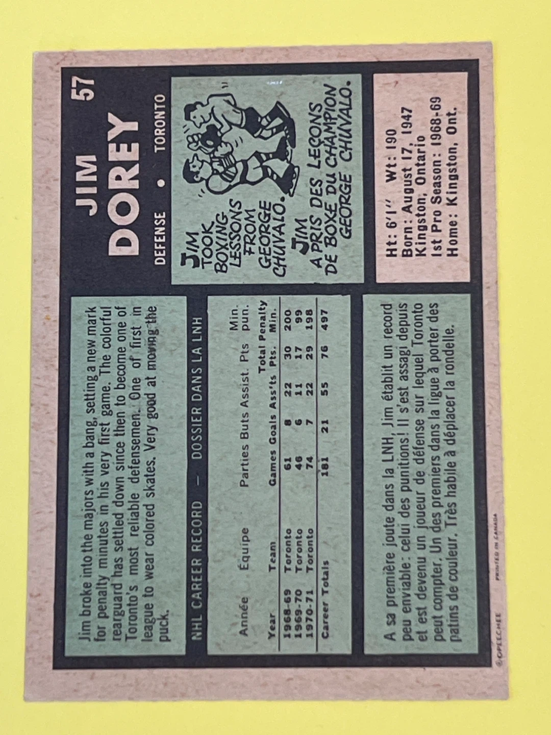 Selling a vintage Jim Dorey Toronto Maple Leafs hockey card. It's in great condition for its age! A cool piece of hockey history for any Leafs fan