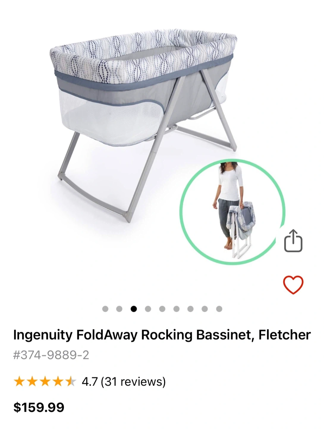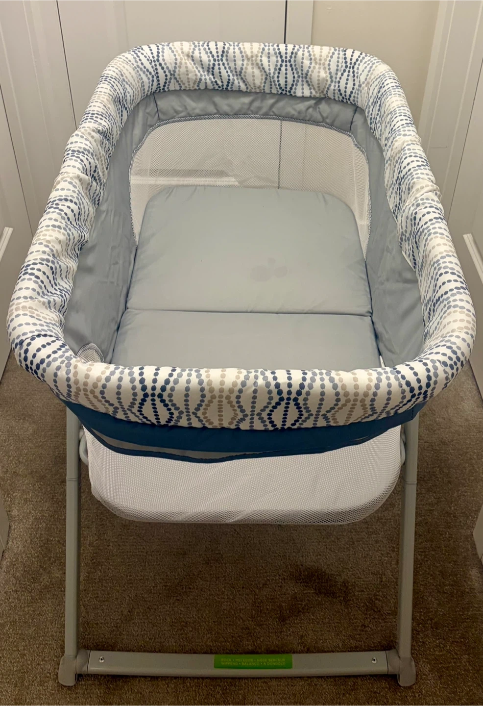 Gently used bassinet in great condition! Perfect for newborns, it's lightweight and easy to move around the house. This bassinet is bigger than regular bassinets.