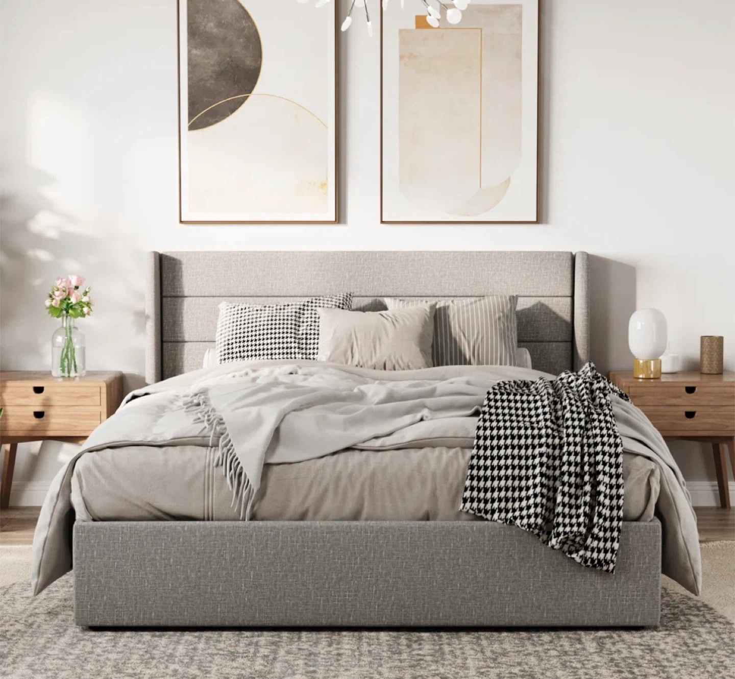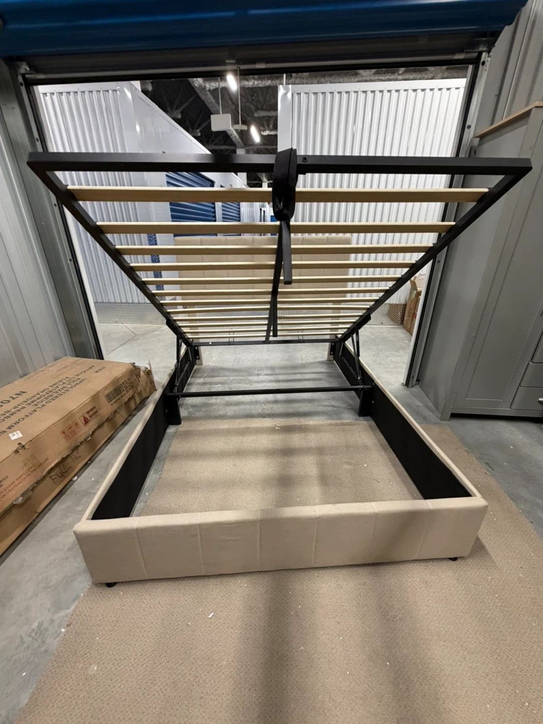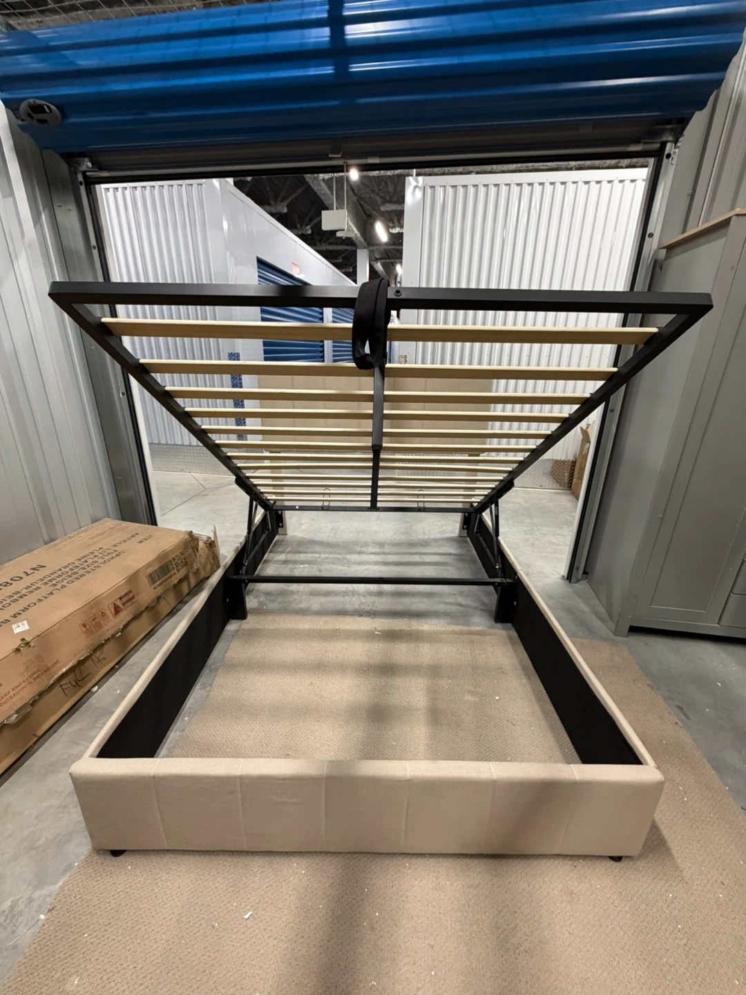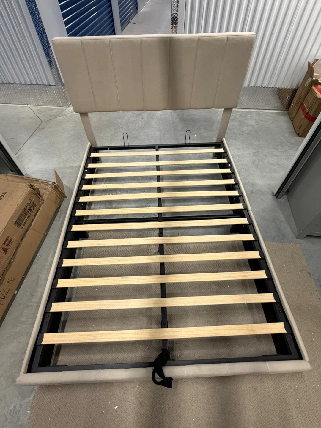 Open box✅Selling a full-size upholstered platform bed frame. It features a neutral colour and a sturdy frame. Perfect for adding a touch of elegance to your bedroom!