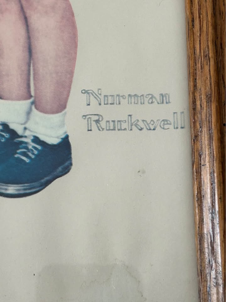 Charming vintage Norman Rockwell wall art in a classic wooden frame. This collectible print features Rockwell’s well-known scene of three schoolgirls, full of character and nostalgic 1950s style. Originally produced by Windsor Decor of Canada (label on the back). A lovely addition for fans of Norman Rockwell, Americana, or vintage illustration art.