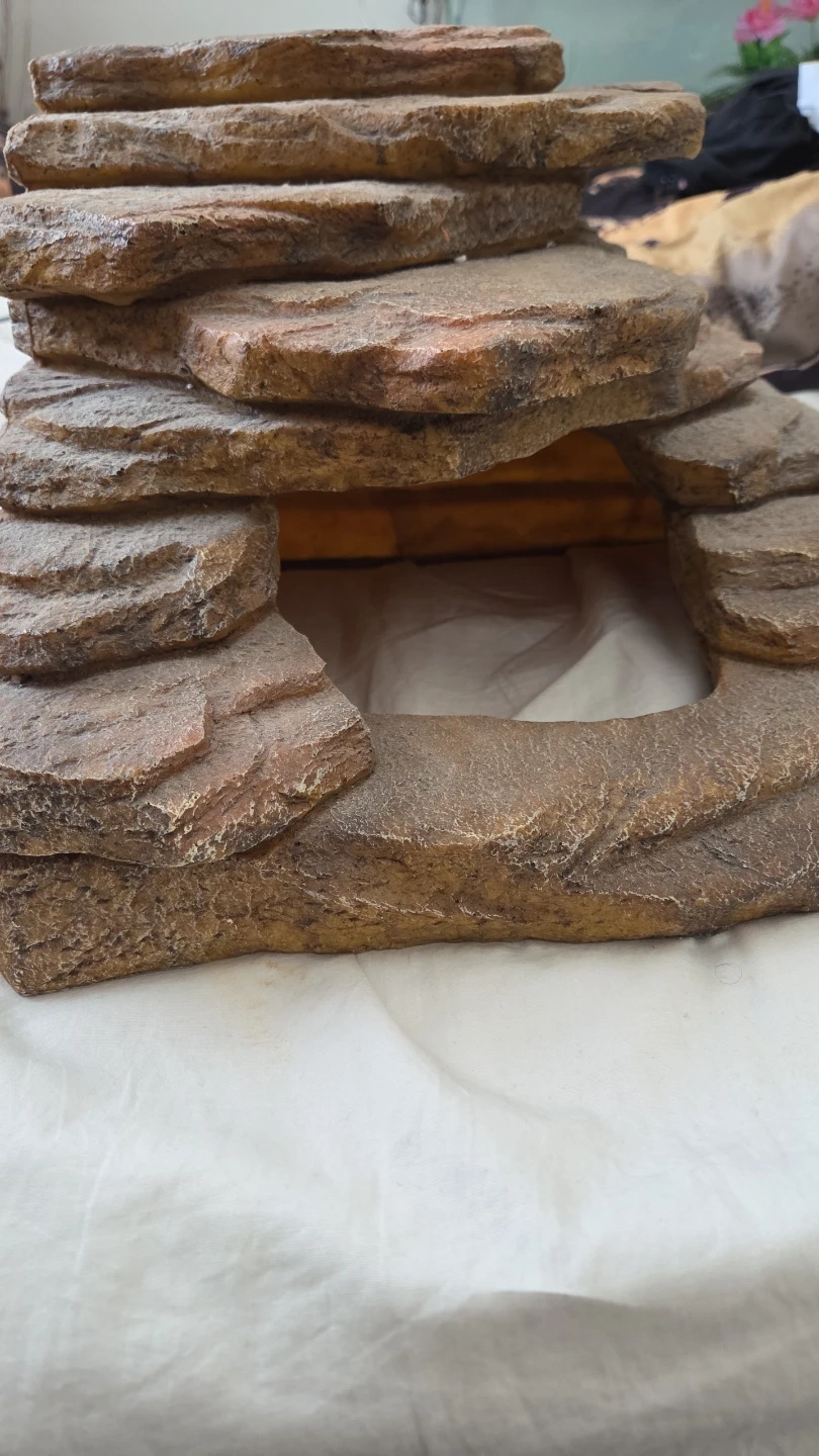 This reptile cave hide rock provides a secure and comfortable space for your pet to relax and feel safe. It's designed to mimic a natural rock formation, adding a touch of realism to your reptile's habitat. Perfect for small to medium-sized reptiles!