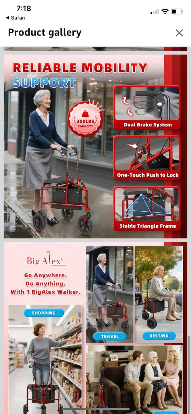 BUILT-IN REST SEAT & STORAGE: The integrated seat supports up to 300 lbs, offering a sturdy built-in seat for whenever you need to rest. The spacious under-seat storage bag securely holds most personal items, Combines walking aid and shopping cart for Superstore trips