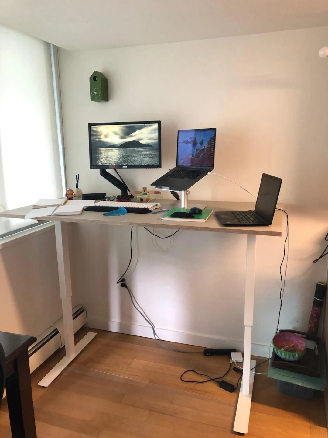 Selling my IKEA Trotten sit/stand desk! It's super handy for switching between sitting and standing throughout the day. Beige table top wooden, metal frame and system.