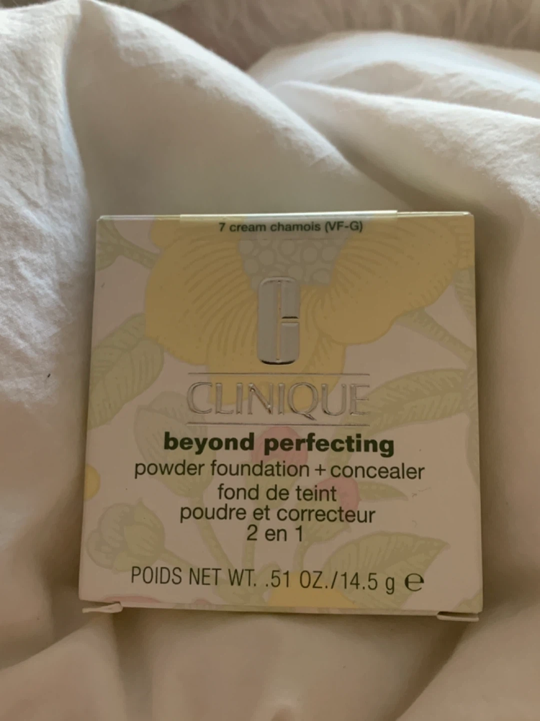 Selling a Clinique Beyond Perfecting powder foundation and concealer. It's a 2-in-1 product! The shade is 7 Cream Chamois (VF-G). Net weight is .51 oz/14.5 g