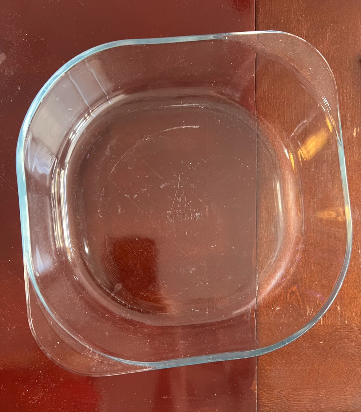 Selling a clear glass baking dish by Pyrex! It's in good condition and ready for all your baking needs. Perfect for casseroles, desserts, and more