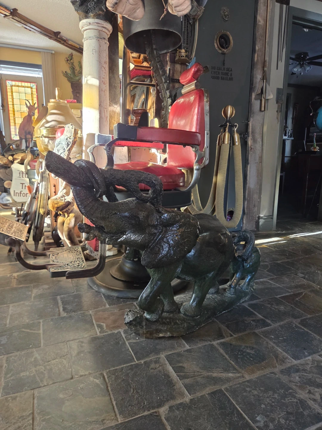 Shipped from Indonesia over 30 years ago at a cost of over 10000$ not including shipping this elephant and baby is a one off work.