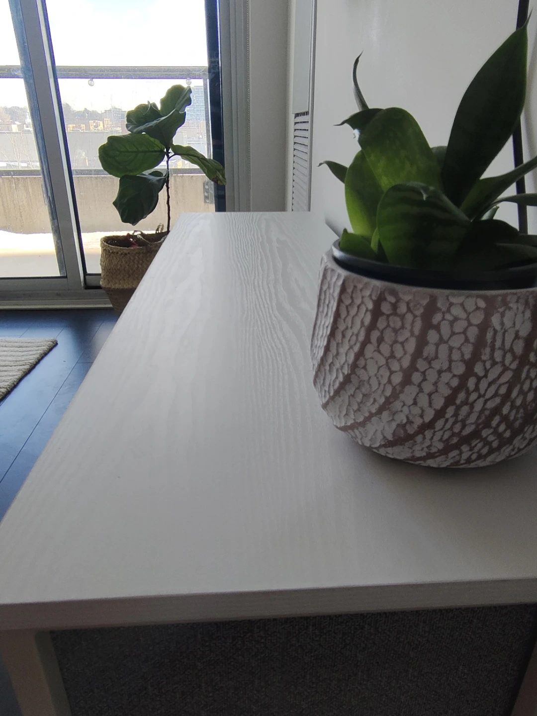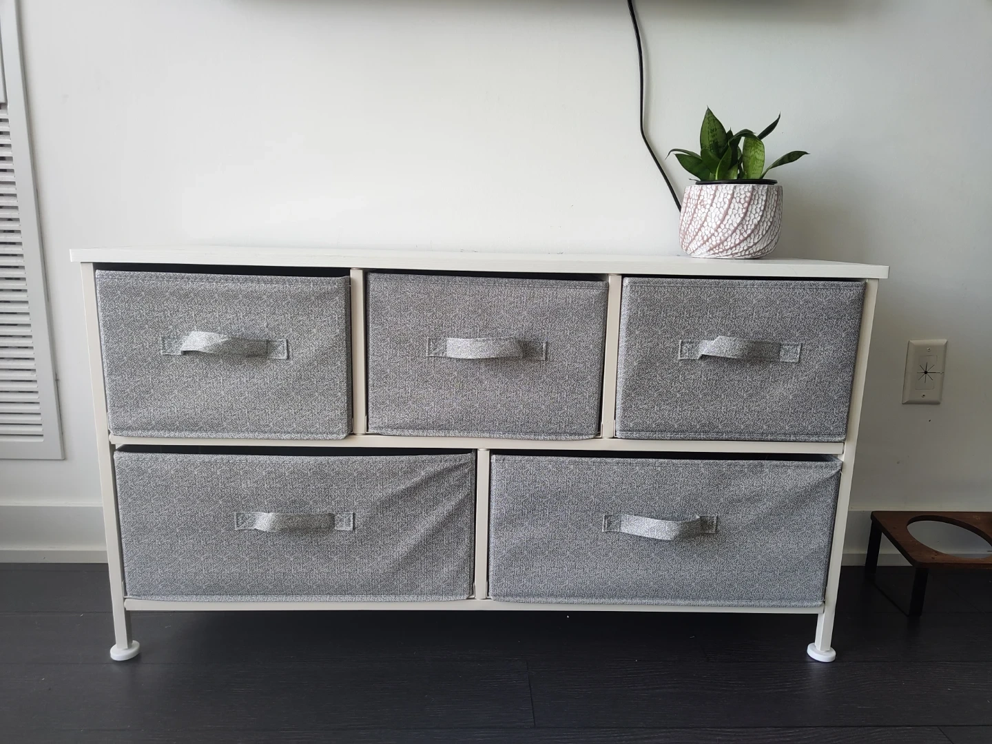 White Dresser with 5 Grey Fabric Drawers