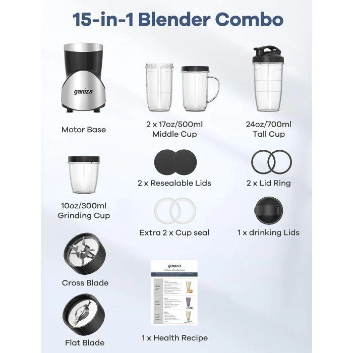Brand New Ganiza 15-in-1 Multifunction Blender | 4 BPA-Free Cup