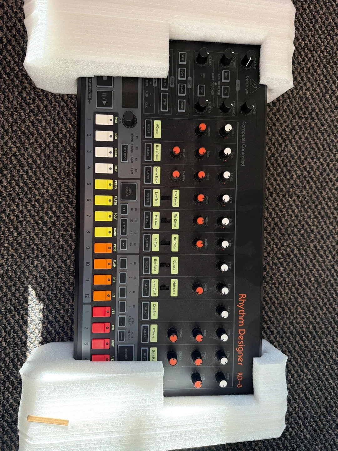 Selling a Behringer Rhythm Designer RD-8, a classic analog drum machine with 16 drum sounds. It features a 64-step sequencer, wave designer, and dual-mode filter. Comes with the original box. 2019-2022 edition. Black. Haven’t used ima while and selling a bunch of stuff I have kicking around