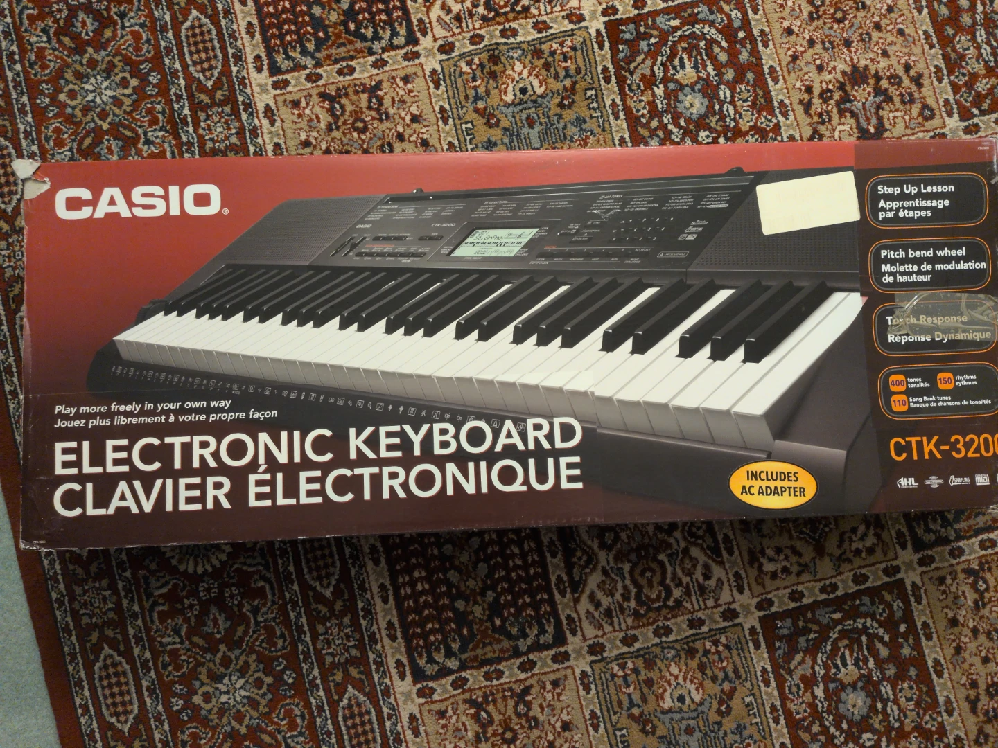 Selling a Casio CTK-3200 electronic keyboard. It includes the AC adapter and comes with the box. Perfect for beginners or anyone looking for a fun and versatile keyboard to play with!