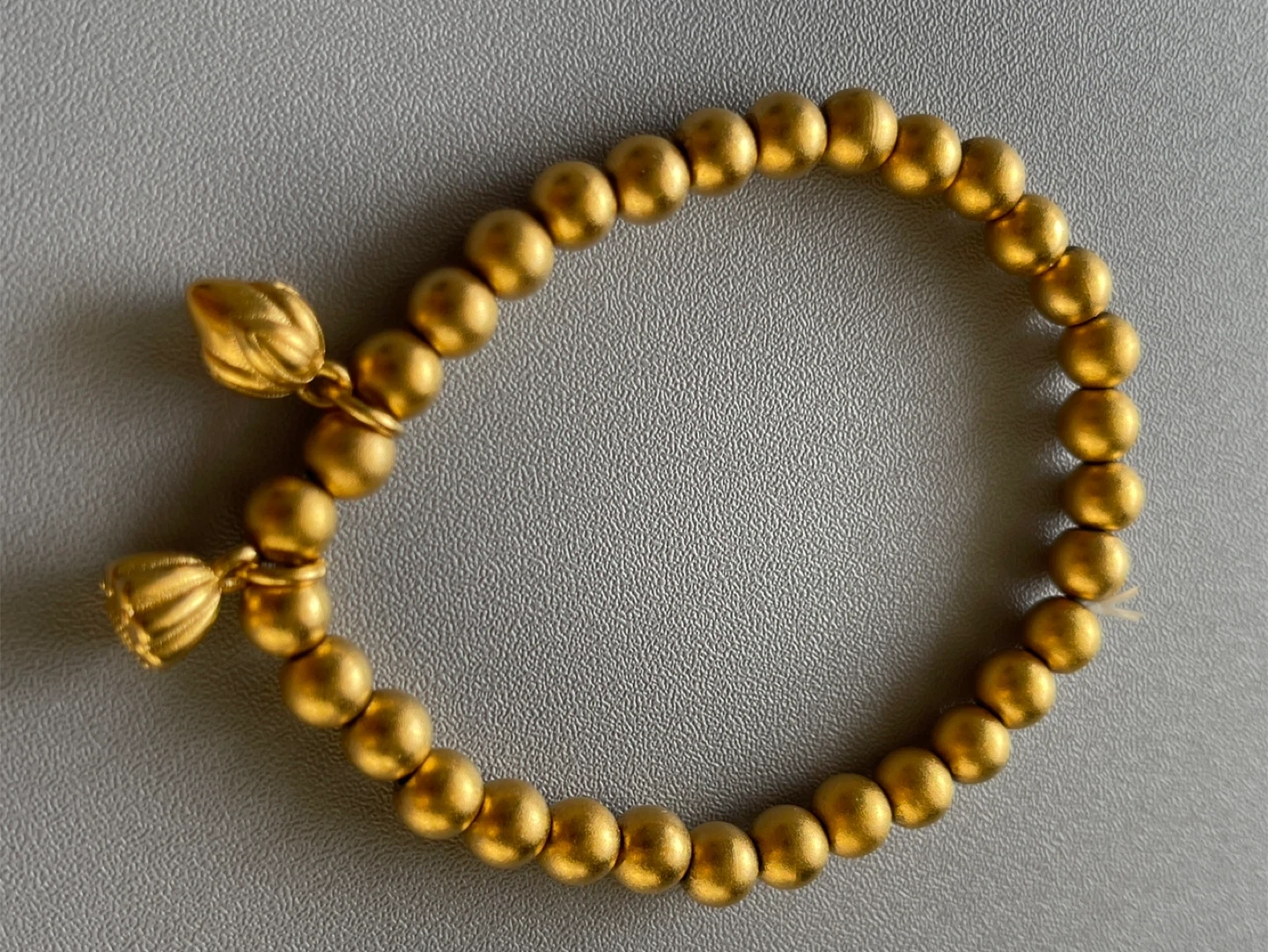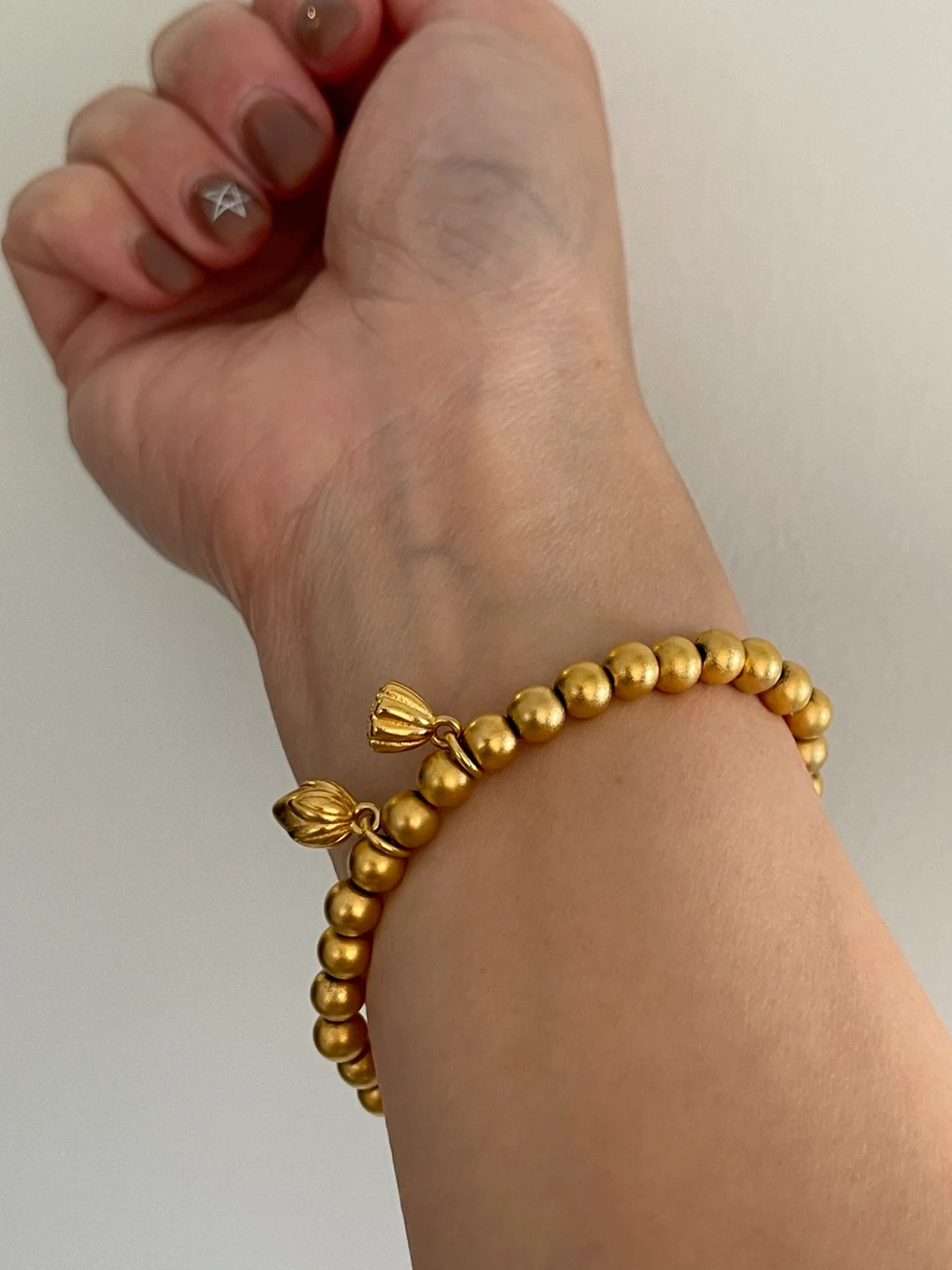 Gold Colour Beaded Bracelet with Lotus Charms
