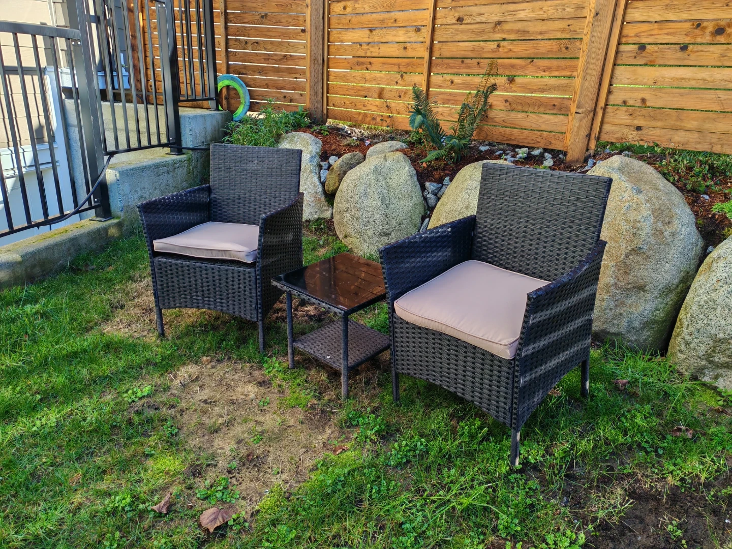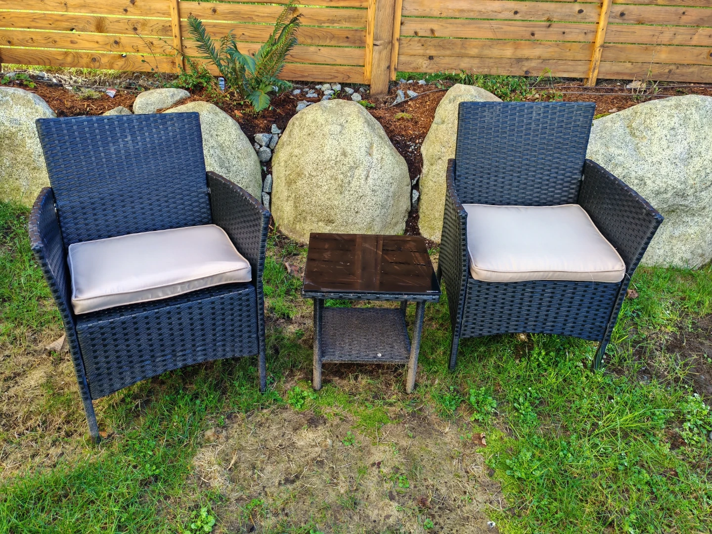 Selling a charming outdoor wicker patio set! It includes two comfortable chairs and a small table, perfect for enjoying your backyard or balcony. The set is in great condition and ready to add some cozy seating to your outdoor space.