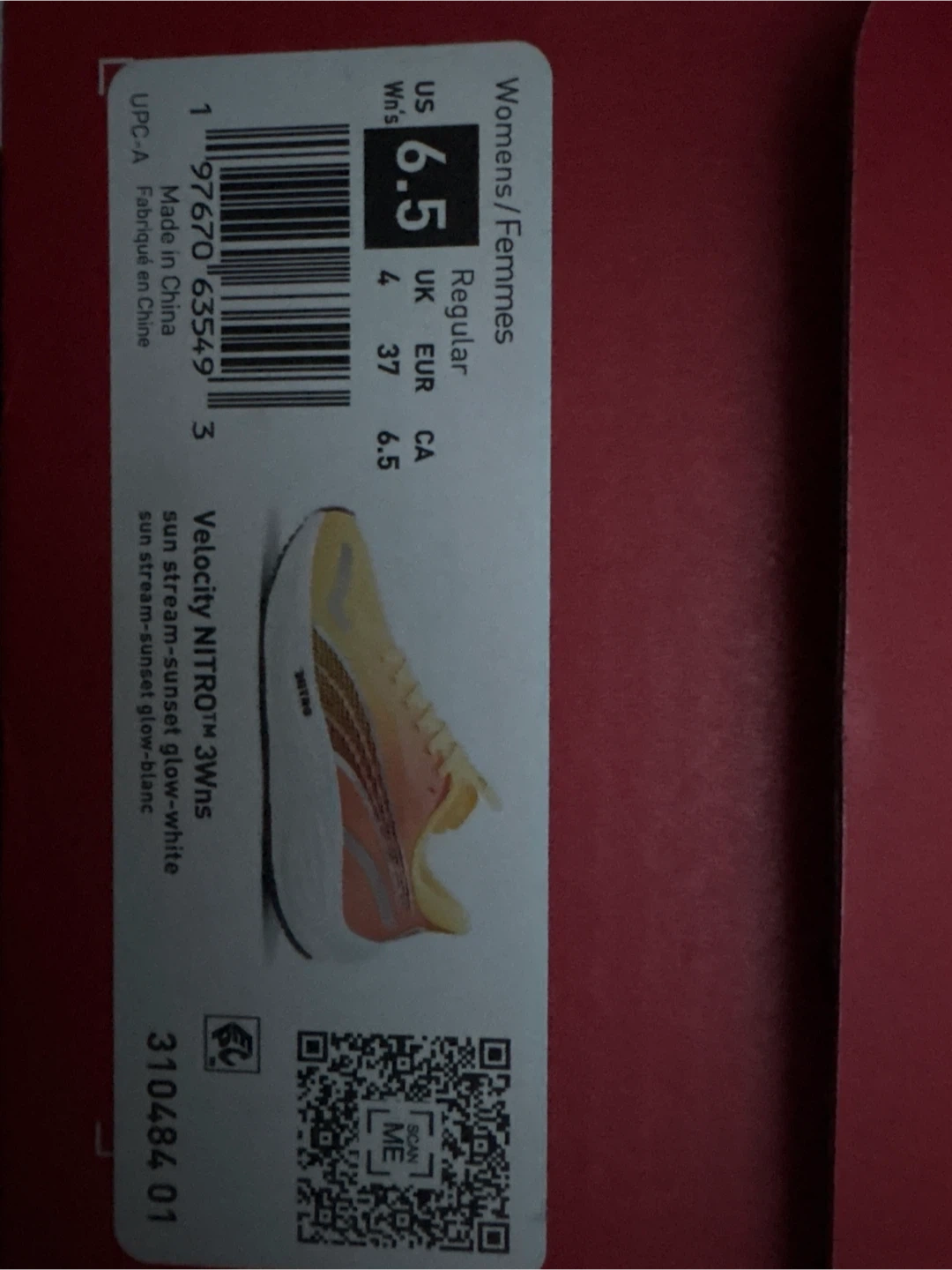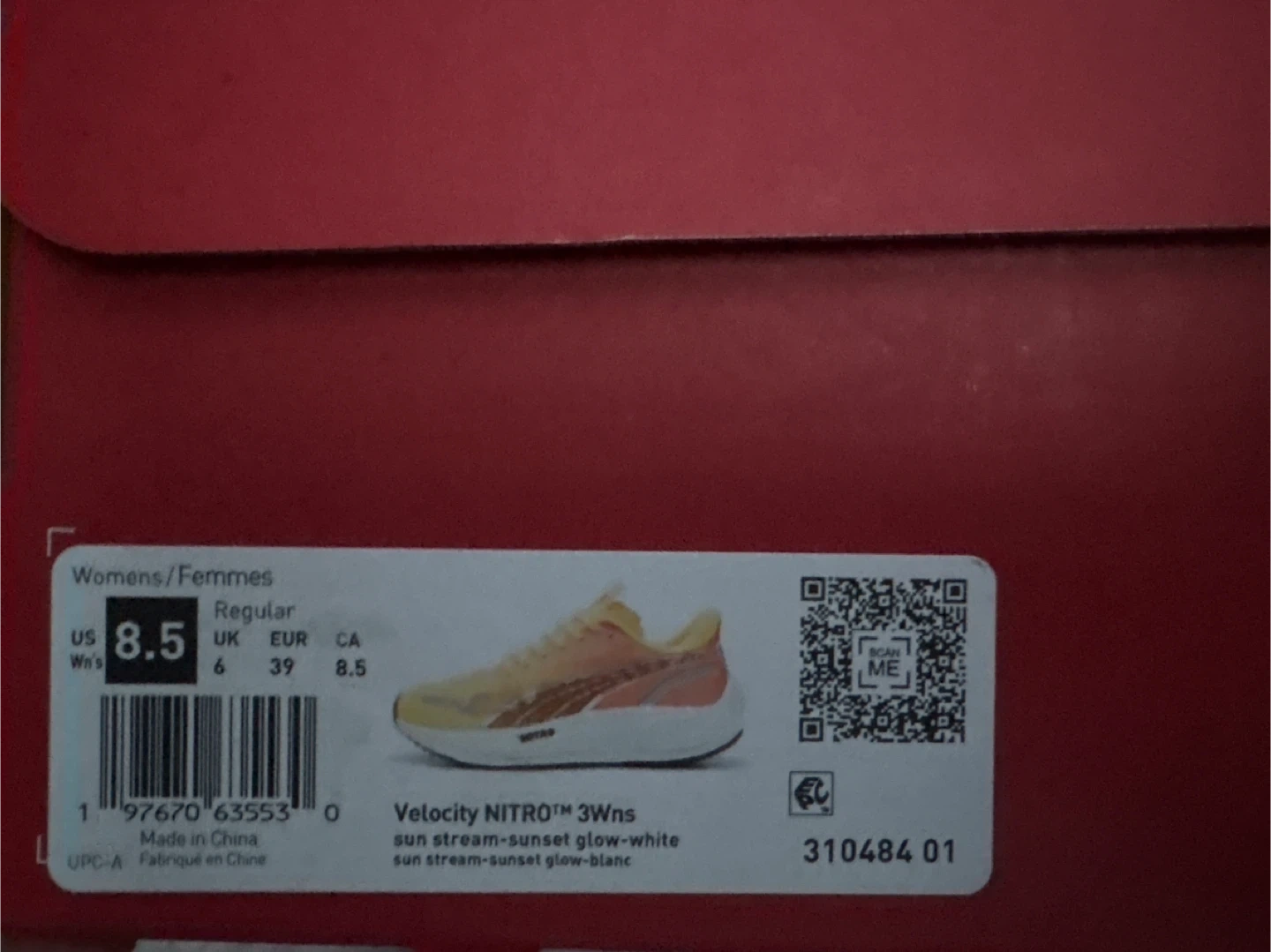 Selling a pair of Puma Velocity Nitro 3 women's running shoes in size 6.5 & 8.5 US. The colour is sun stream-sunset glow-white. They come with the original box