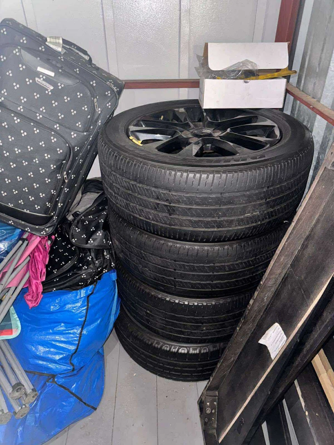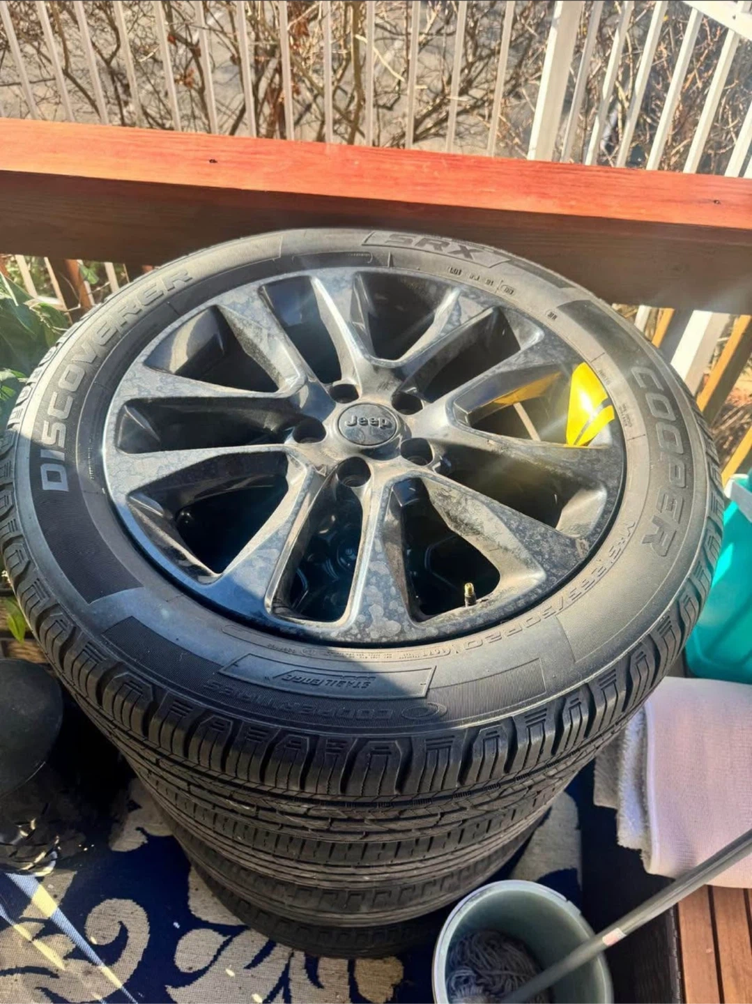 Selling a set of 4 used tires. They're in good condition and ready to get you back on the road! 4 pair of grand Cherokee rims with the wheels size 20” use like new just dirty.