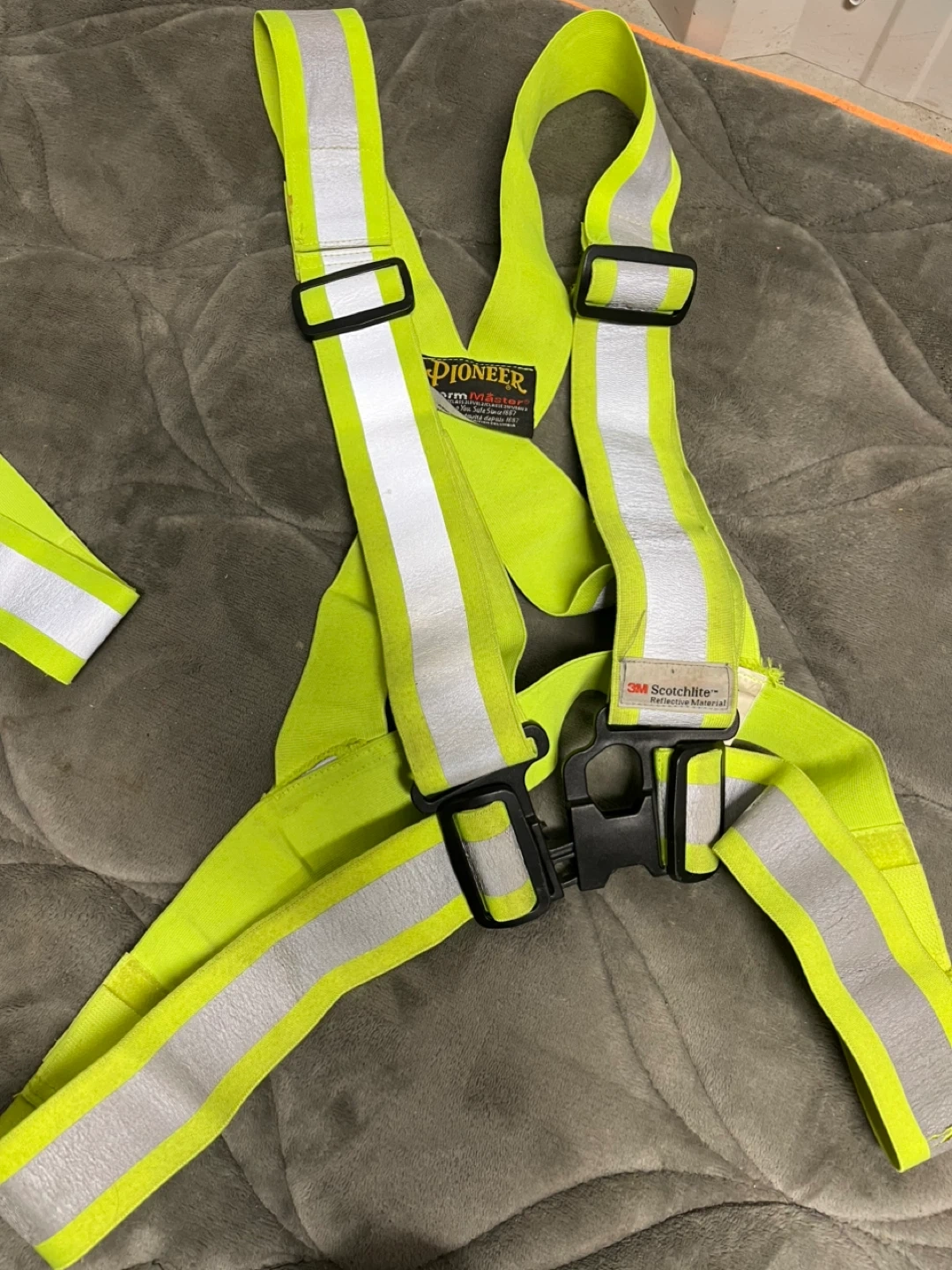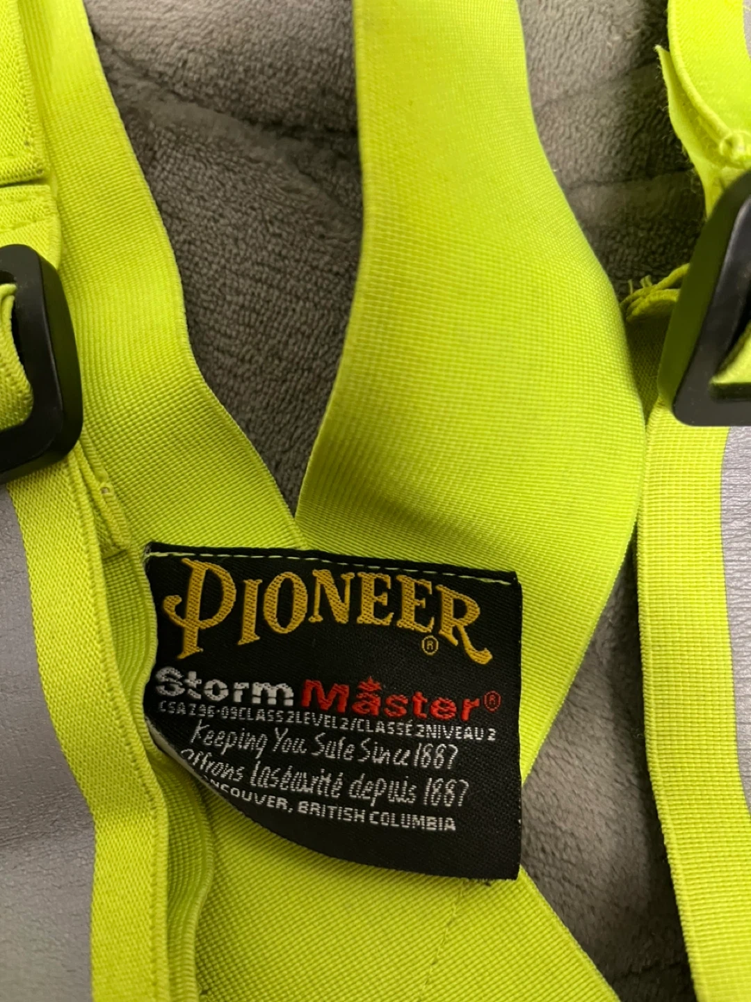 Selling a Pioneer Storm Master safety harness. They are in good condition and ready for use. This high-visibility harness will keep you safe since 1887!