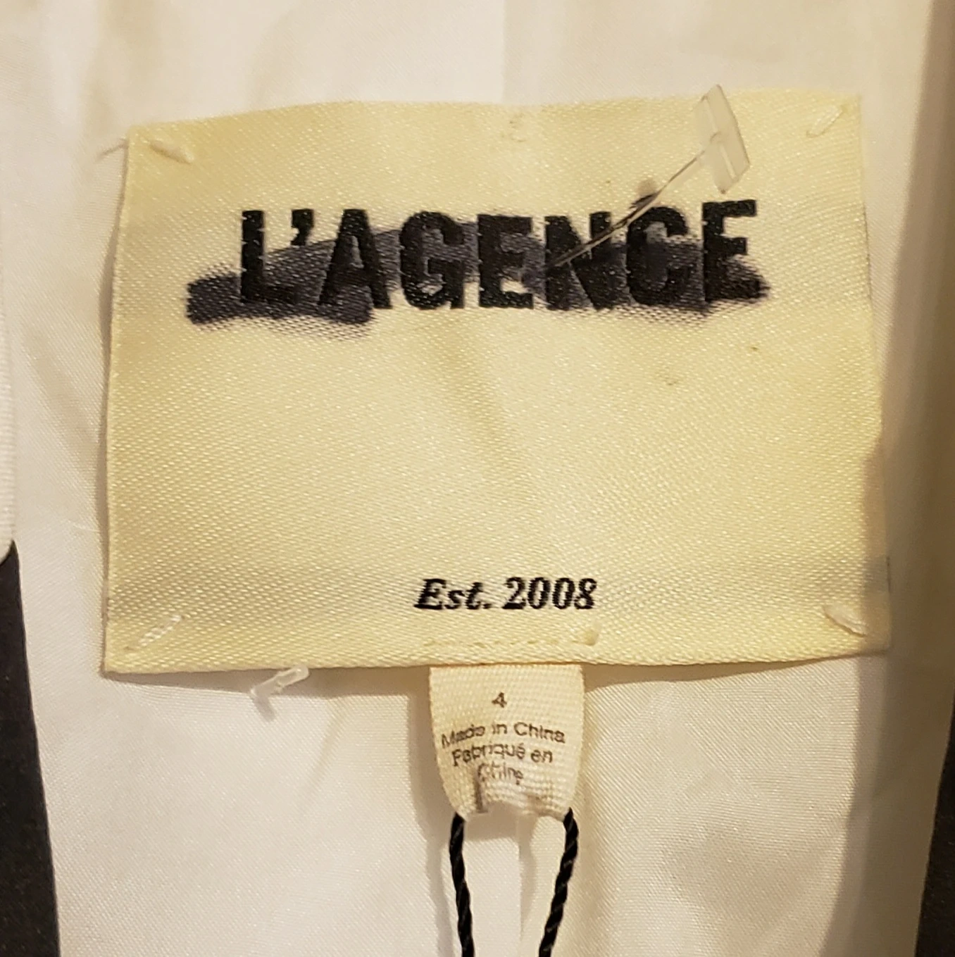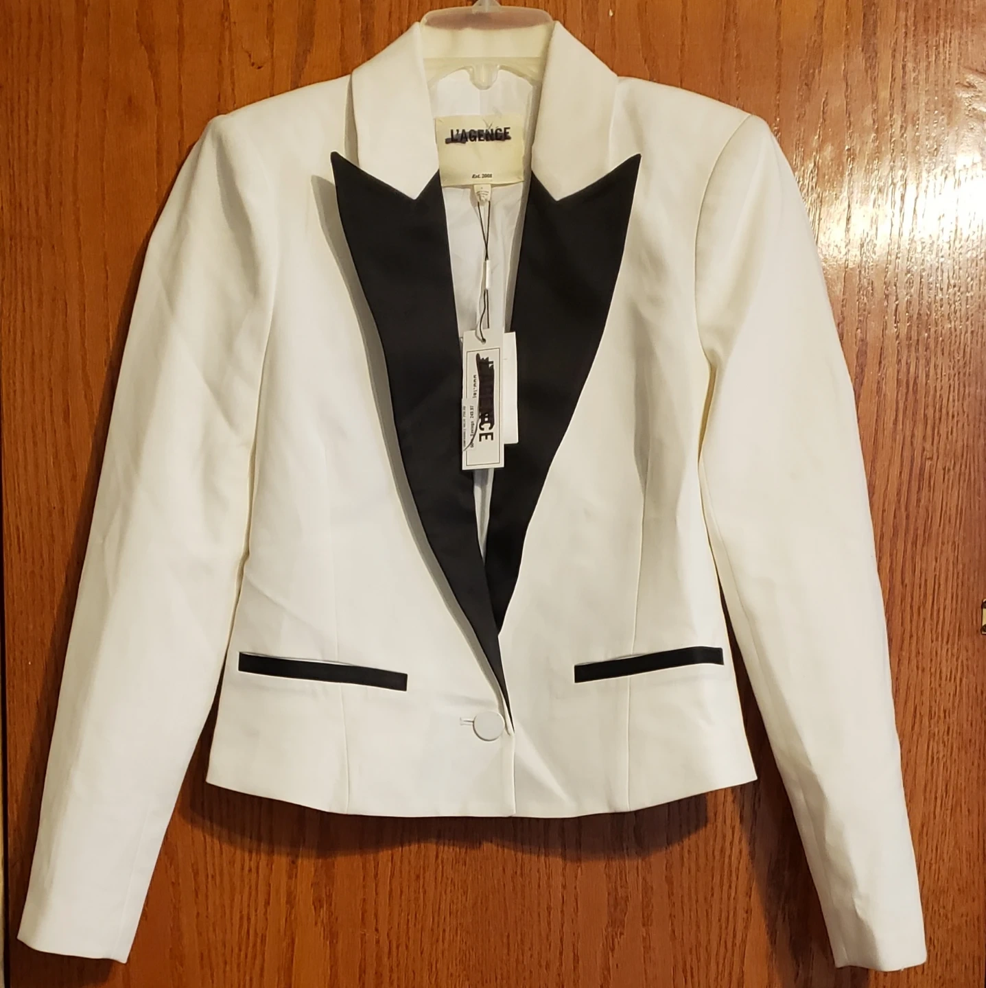 L'AGENCE blazer in a women's size 4. The blazer is ivory white with black accents. Brand new with tags, retail value over $250. Cash only pickup in Queens NY.