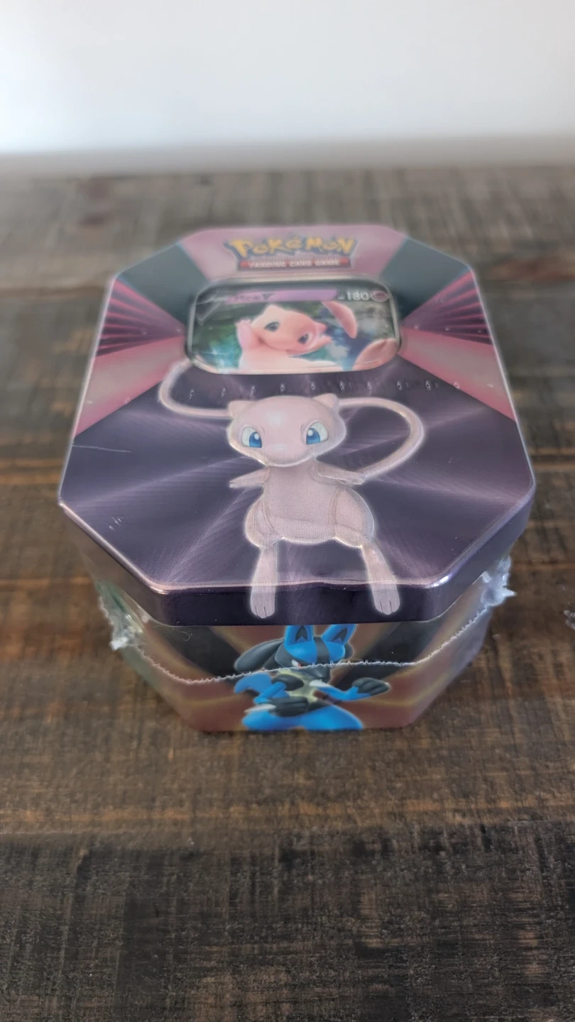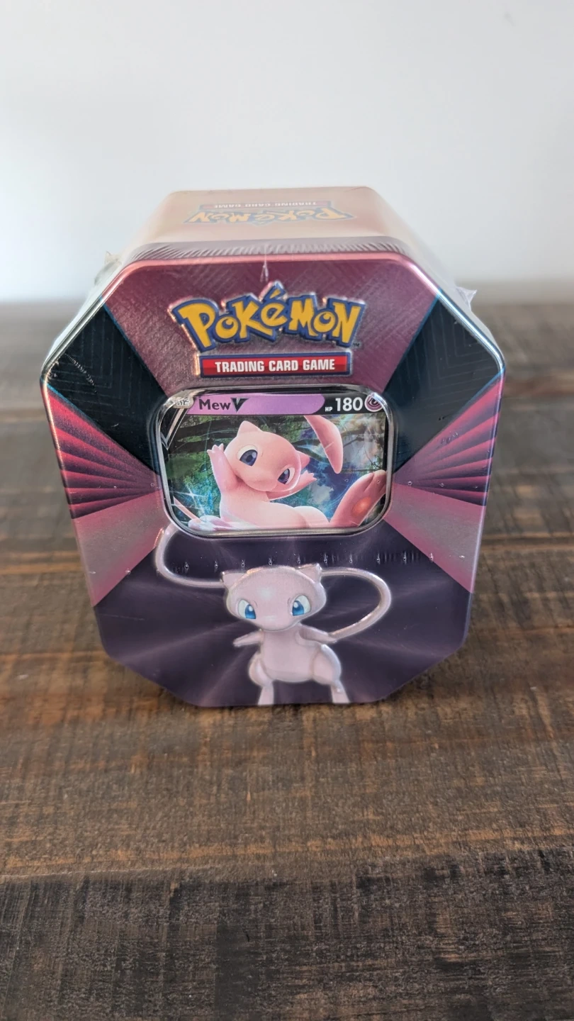 Selling a Pokémon Trading Card Game V Forces Tin featuring Mew V! This tin includes: