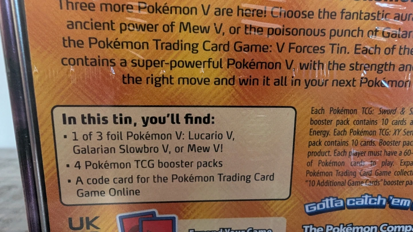 - 1 of 3 foil Pokémon V: Lucario V, Galarian Slowbro V, or Mew V!