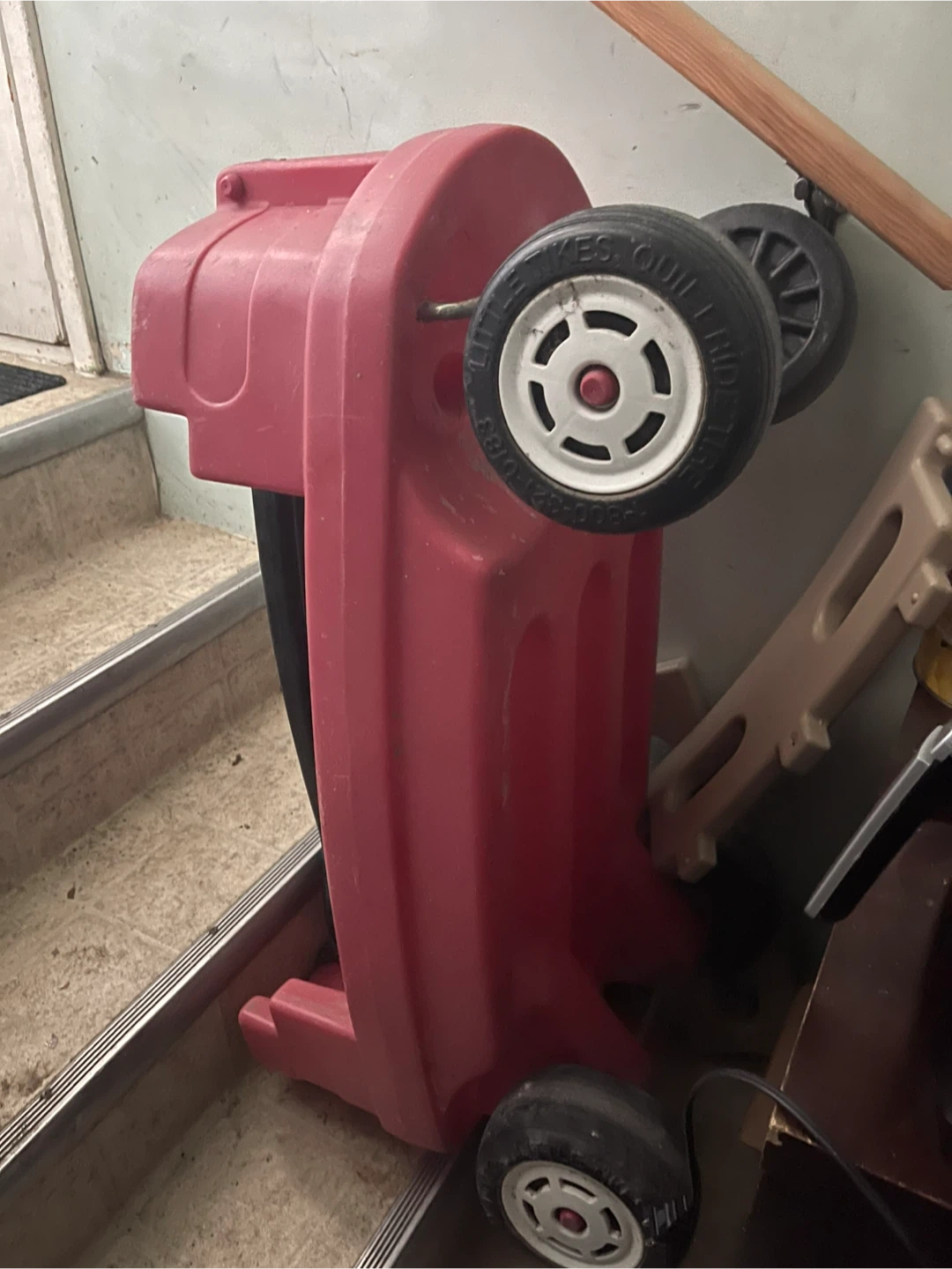 Selling used Little Tikes Cozy Coupe! This classic ride-on toy is perfect for toddlers and young children who love to explore. It features a durable plastic construction, a parent push handle, and a fun, friendly design. It has some signs of use, but it's still in good condition and ready for more adventures