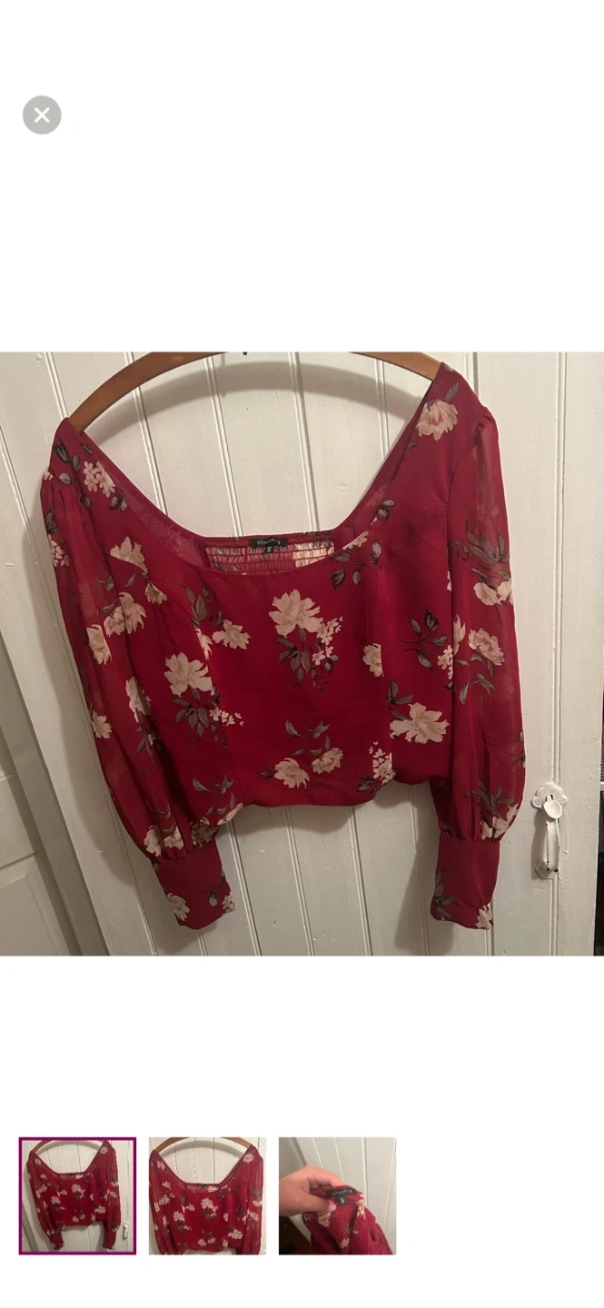 Dynamite brand. Long sleeve cropped sheer blouse. Red with white floral print. Size large. Brand new condition