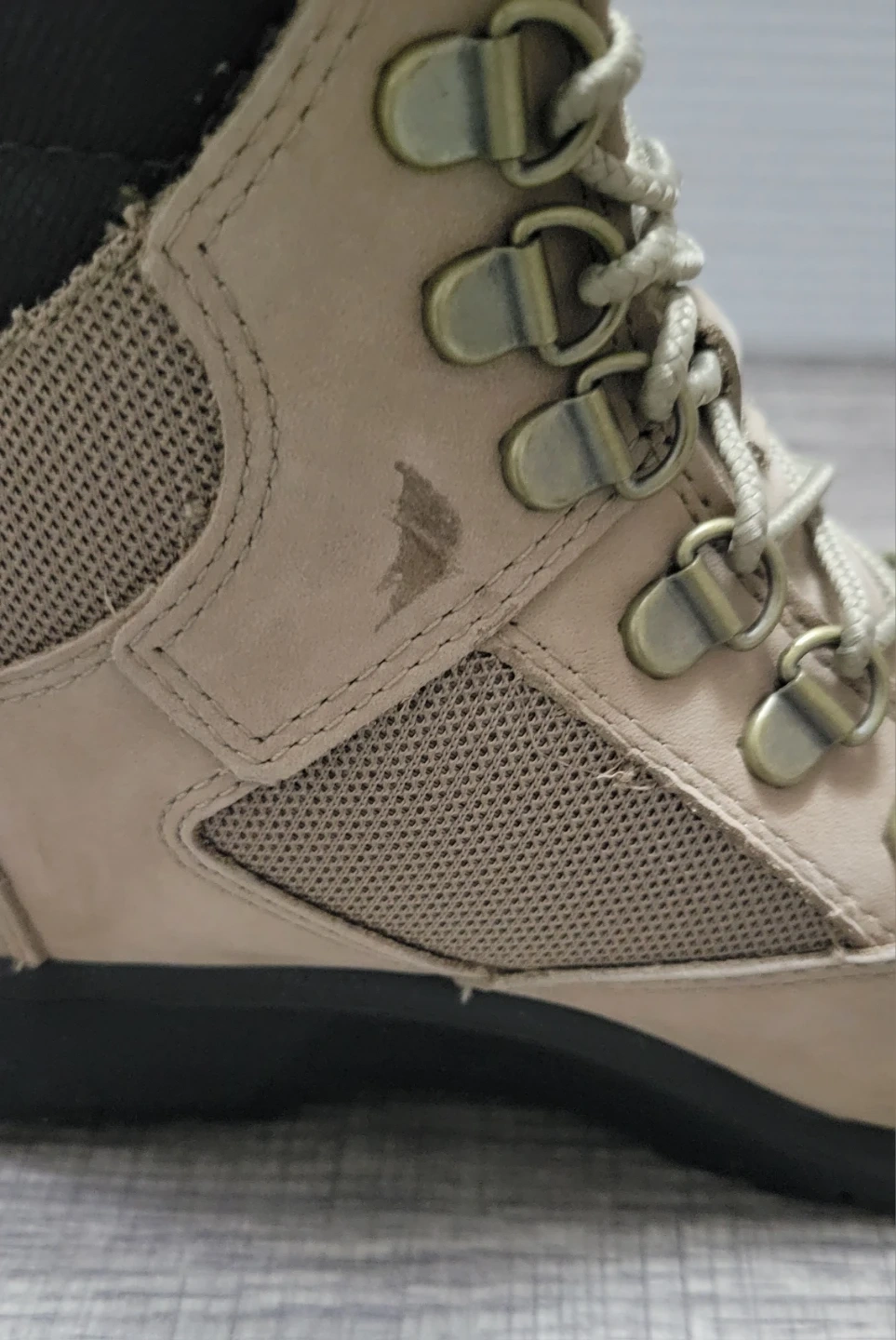 Please note boots are brand new, but has a little stain as demonstrated on the picture. Stain should come out but I do not want to mess with it.