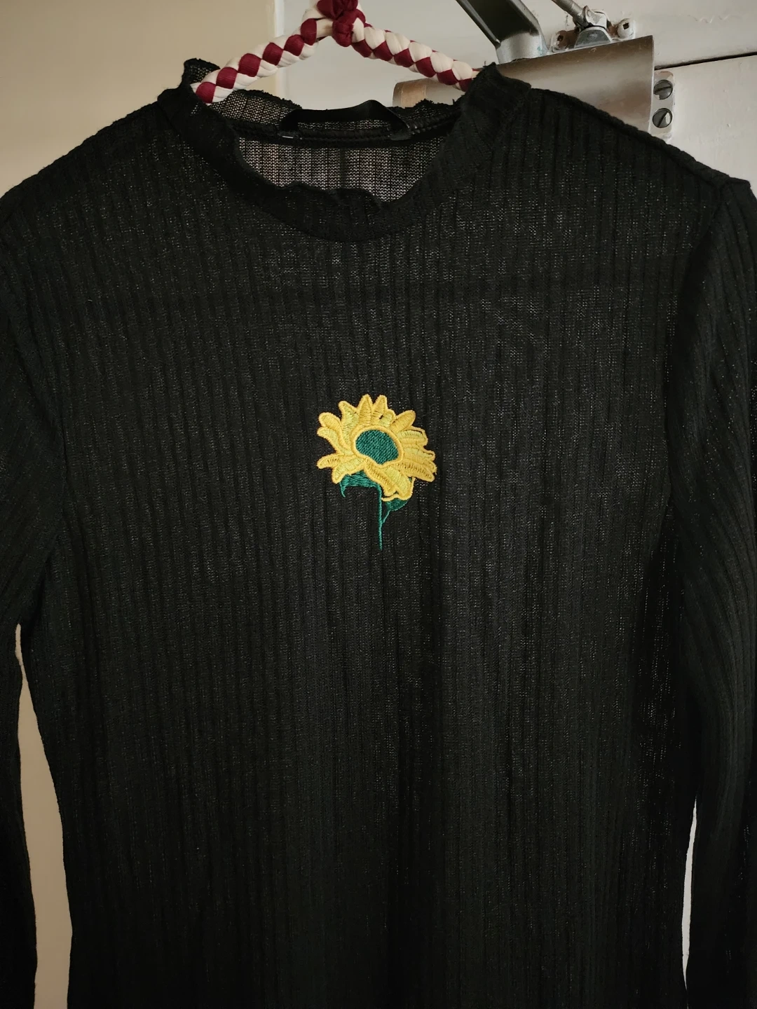 Has a cute embroidery sunflower in the front.