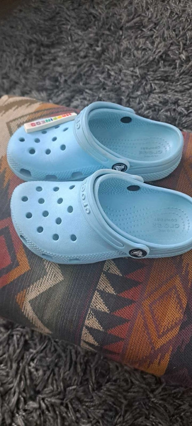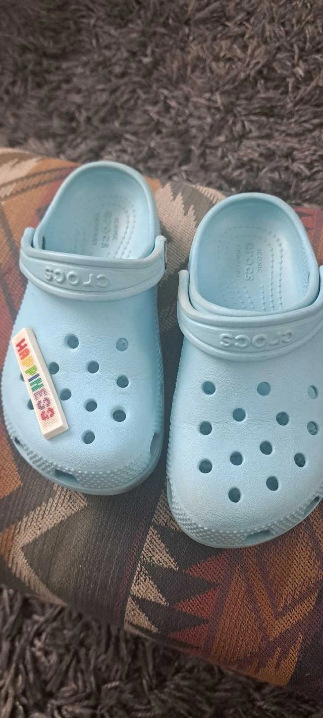 These light blue Crocs, in a kids' size C12, are perfect for your little one's adventures! I'm selling these used but still in good condition Crocs to clear out some space in our closet.