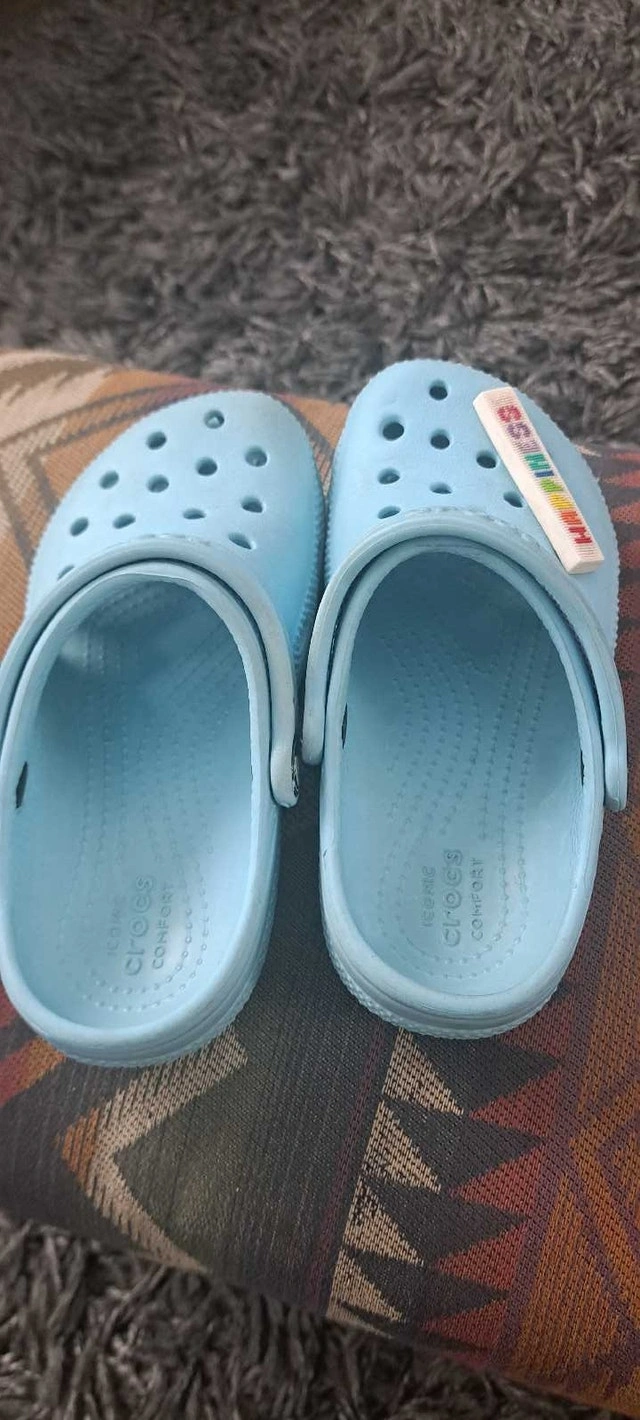 They’ve got some wear, but plenty of life left for splashing in puddles or running around the park. If you're seeing this ad, the Crocs are still available and ready for a new home!