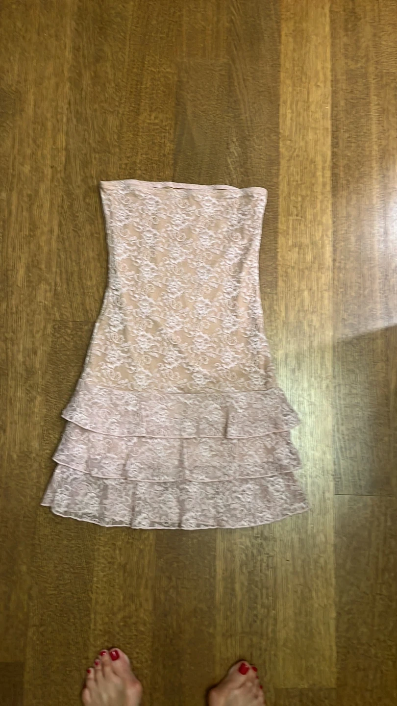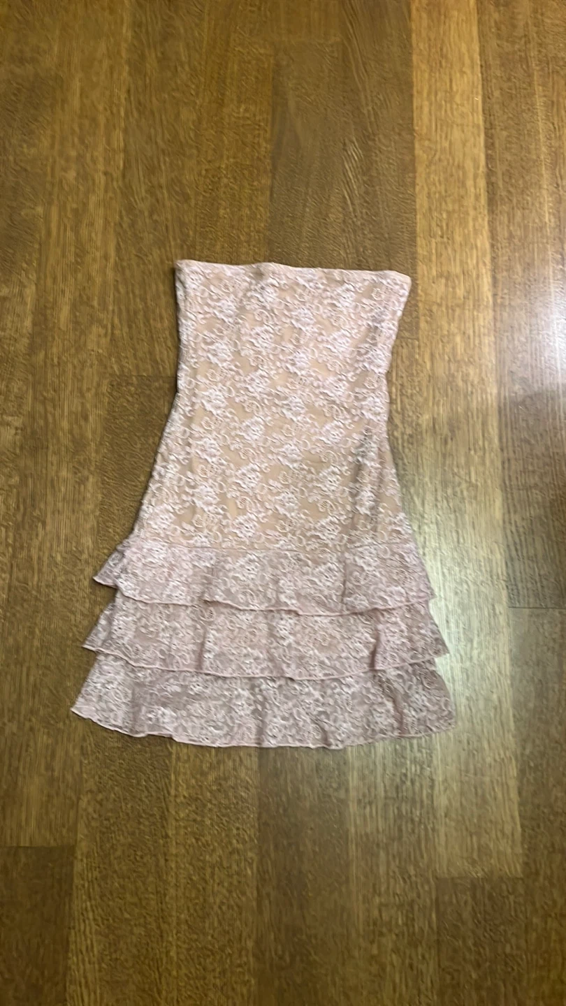 Here's a cute lace mini dress with a ruffle design! It's perfect for a party or a night out. The dress is in great condition and ready for a new owner