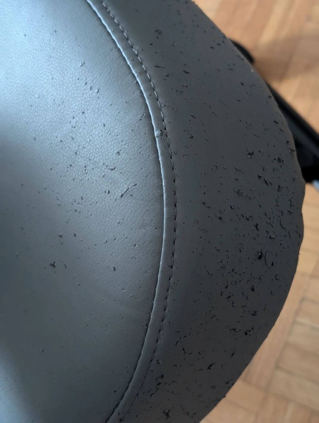 Selling a kneeling chair. As you can see from the photos, the seat and knee rest have some wear, scratches and tear. Still functional though!