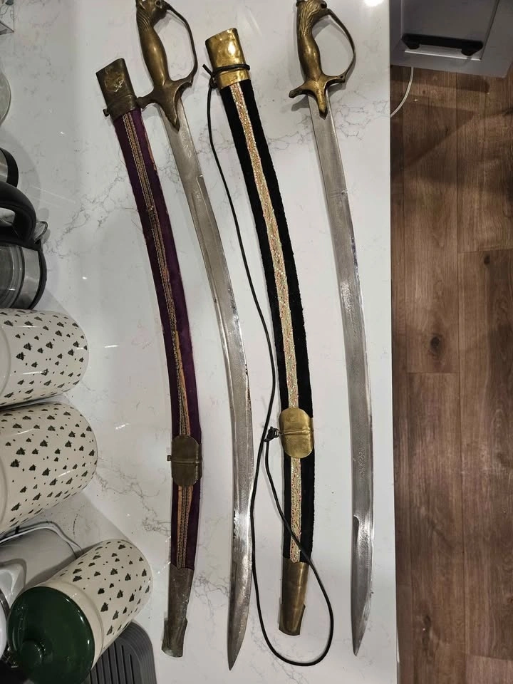Pair of Decorative Brass-Hilt Sabres w Scabbards