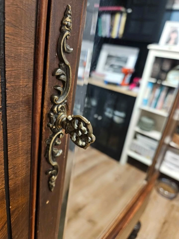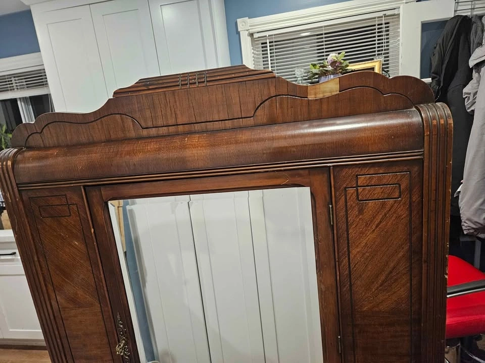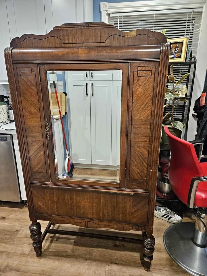 Antique Wardrobe Cabinet with Mirror – Solid Wood (c.1900–1920)