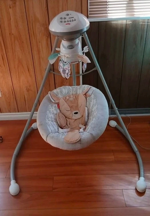 Selling a Fisher-Price baby swing in great condition! The swing features a cute deer design and is perfect for soothing your little one. It has a variety of settings to help your baby relax and drift off to sleep. The swing is clean and ready for its next home. Selling for only $50.00