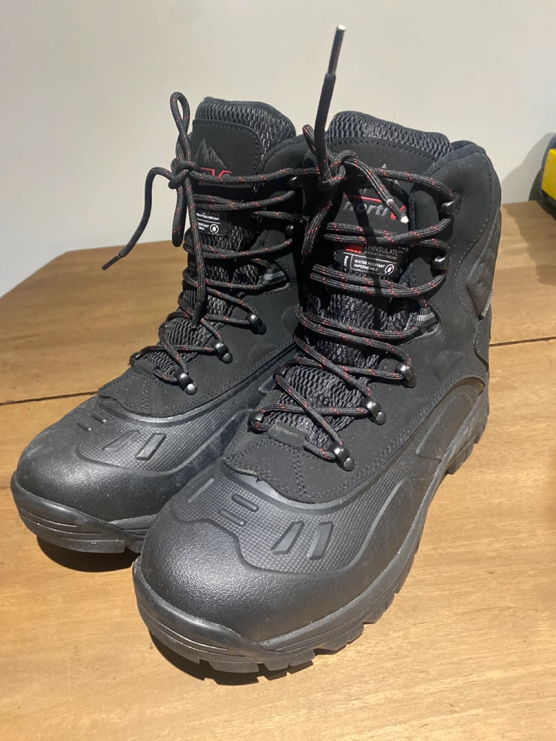 Keep your feet warm and dry this winter with these Nortiv8 insulated winter boots. These boots are waterproof, and have Thinsulate insulation. These boots are in new condition, as seen in the photos, used once for 1/2 hour wrong size.