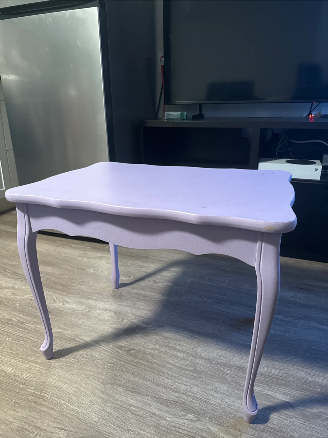 Selling a cute lilac accent table! It's perfect for adding a touch of whimsy to any room. The table is in good condition and ready for a new home!