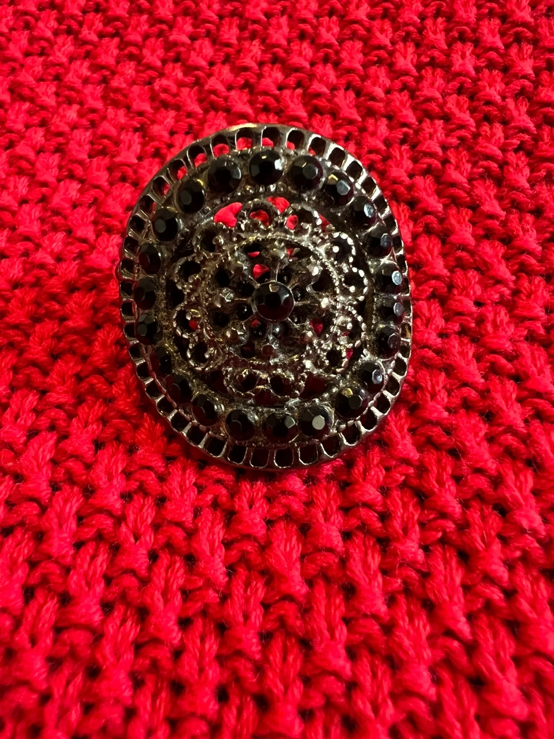 Selling a beautiful black statement ring! It features an intricate design with black stones. The ring is adjustable, making it a comfortable fit for most finger sizes.