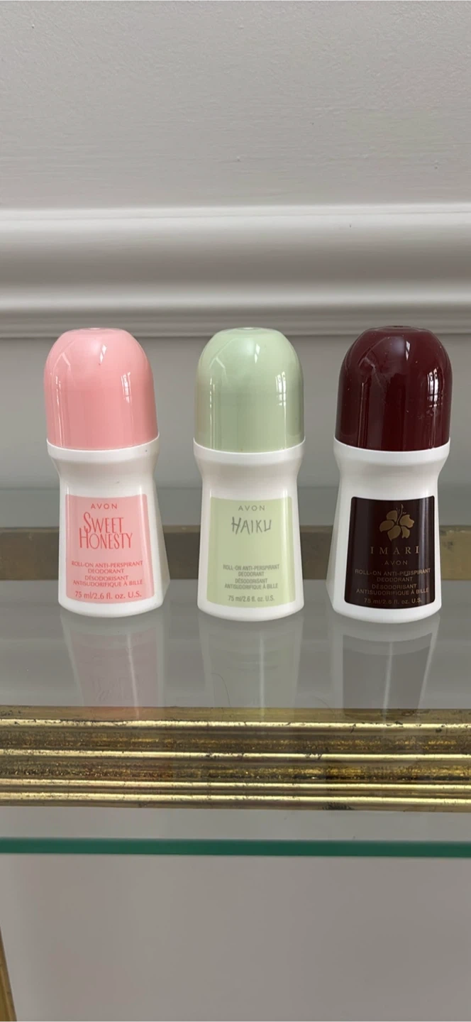 Avon roll-on anti-perspirant deodorants.