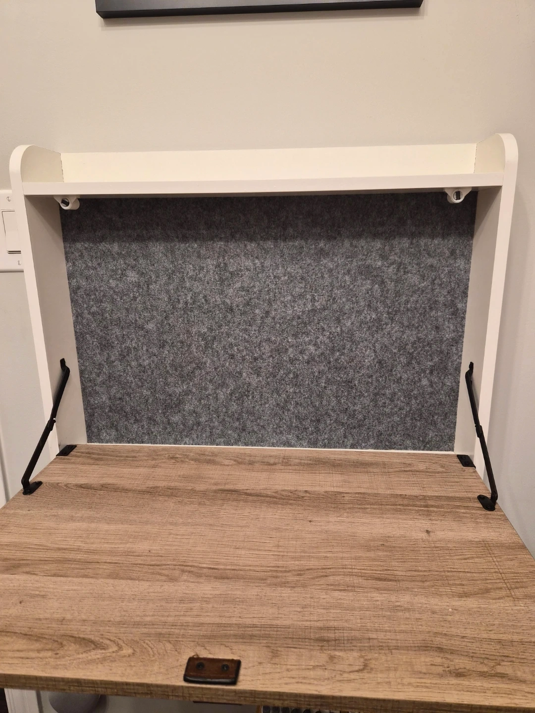 This wall-mounted folding desk is a great space-saving solution for small homes or apartments. It's perfect for a home office, study area, or craft space. The desk folds up neatly when not in use, and the neutral colour will match any decor!
