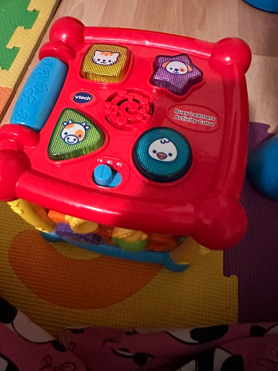 Selling a VTech Busy Learners Activity Cube! This fun and interactive toy is perfect for keeping little ones entertained. It features colourful buttons, animal shapes, and playful sounds to engage your child's senses and help them develop fine motor skills. It's in great condition and ready for a new home!